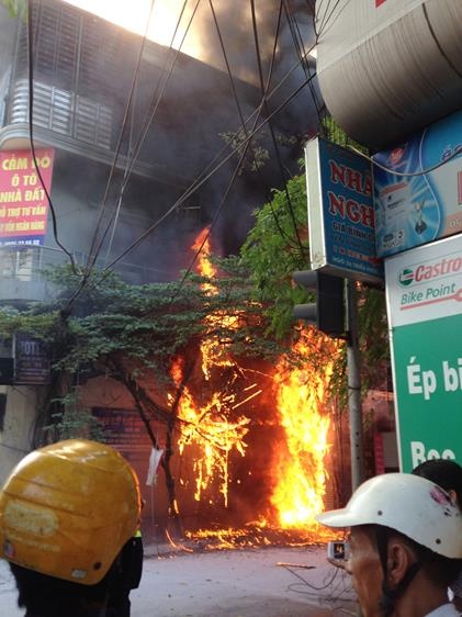 Anh Thái, người dân chứng kiến sự việc cho biết: "Thời điểm trên, ngọn lửa bùng phát ở giáp trần tầng 2 cửa hàng quần áo. Nhiều người chứng kiến đã chạy sang ngôi nhà số 3 lấy bình xịt mini để xịt nhưng không kiểm soát được. Ngọn lửa bùng lên nhanh chóng, bao trùm toàn bộ cột điện".