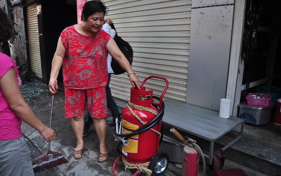 | Chủ ngôi nhà số 3 Triều Khúc cho biết phải mua thêm bình cứu hỏa cỡ lớn về dập lửa trong khi chờ lực lượng chữa cháy. Tuy nhiên, vật liệu cháy là dây điện bằng nhựa nên cháy rất dữ dội không thể kiểm soát được. |