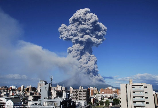 Rất nhiều tro bụi đã rơi xuống thành phố Kagoshima khiến các công ty đường sắt phải tạm ngừng hoạt động, trong khi đó các lái xe cũng phải bật đèn vì bầu trời tối sầm lại.