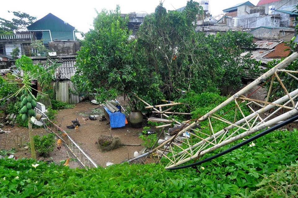 Chiều tối 16/9, khi bão Kalmaegi đổ bộ, gió giật mạnh cấp 9-10 khiến tháp thu phát sóng truyền hình cao 35 m tại Hải Hà (Quảng Ninh) đổ sập vào nhà dân.
