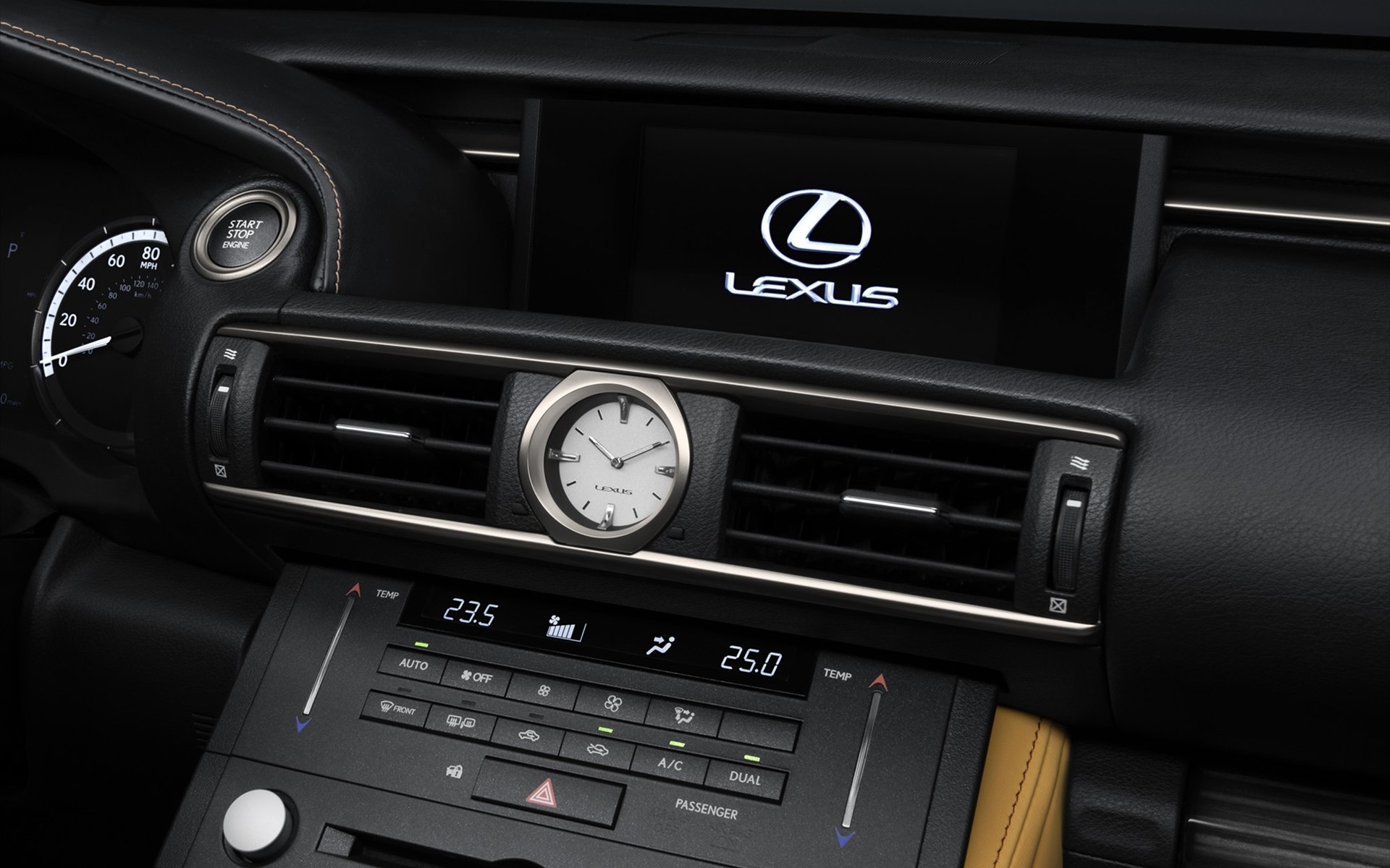| Sự tương phản đã làm nên sự nổi bật và sexy của mẫu RC. Từ những hình ảnh nội thất do Lexus cung cấp, hãng đã cho thấy từ bảng điều khiển trung tâm đến những ngăn chứa đồ đều rất gọn gàng và không có nhiều sự xáo trộn bất tiện. Ngoài ra cón có một chiếc đồng hồ đẹp đặt ngay giữa bảng táp lô và hệ thống âm thanh. |