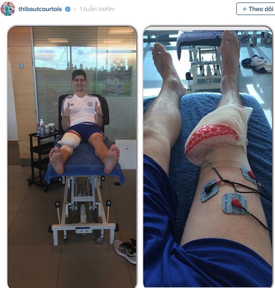 | Courtois chia sẻ trên Instagram: "Sau một tuần điều trị, mọi chuyện đang diễn ra rất tốt. Cảm ơn sự động viên của mọi người". |