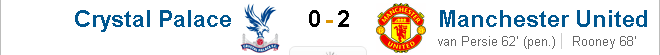 62': Van Persie sút bóng căng vào góc phải khung thành, mở tỷ số trận đấu. Thủ môn C.Palace đã hoàn toàn bị đánh lừa sau cú sút 11m của tiền đạo Hà Lan.