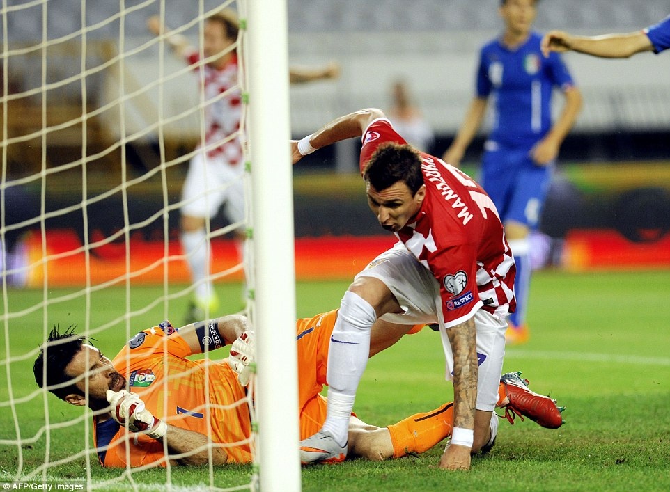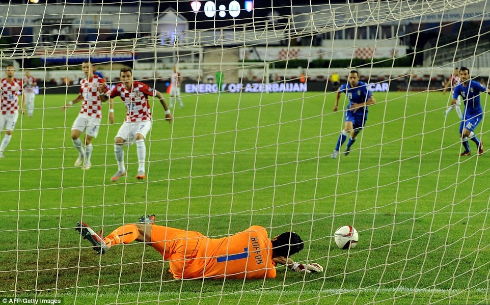 | Croatia sớm có cơ hội vươn lên dẫn trước khi được hưởng penalty ở phút thứ 7. Tuy nhiên, trên chấm 11 m, Mario Mandzukic không khuất phục được thủ thành Gigi Buffon. |