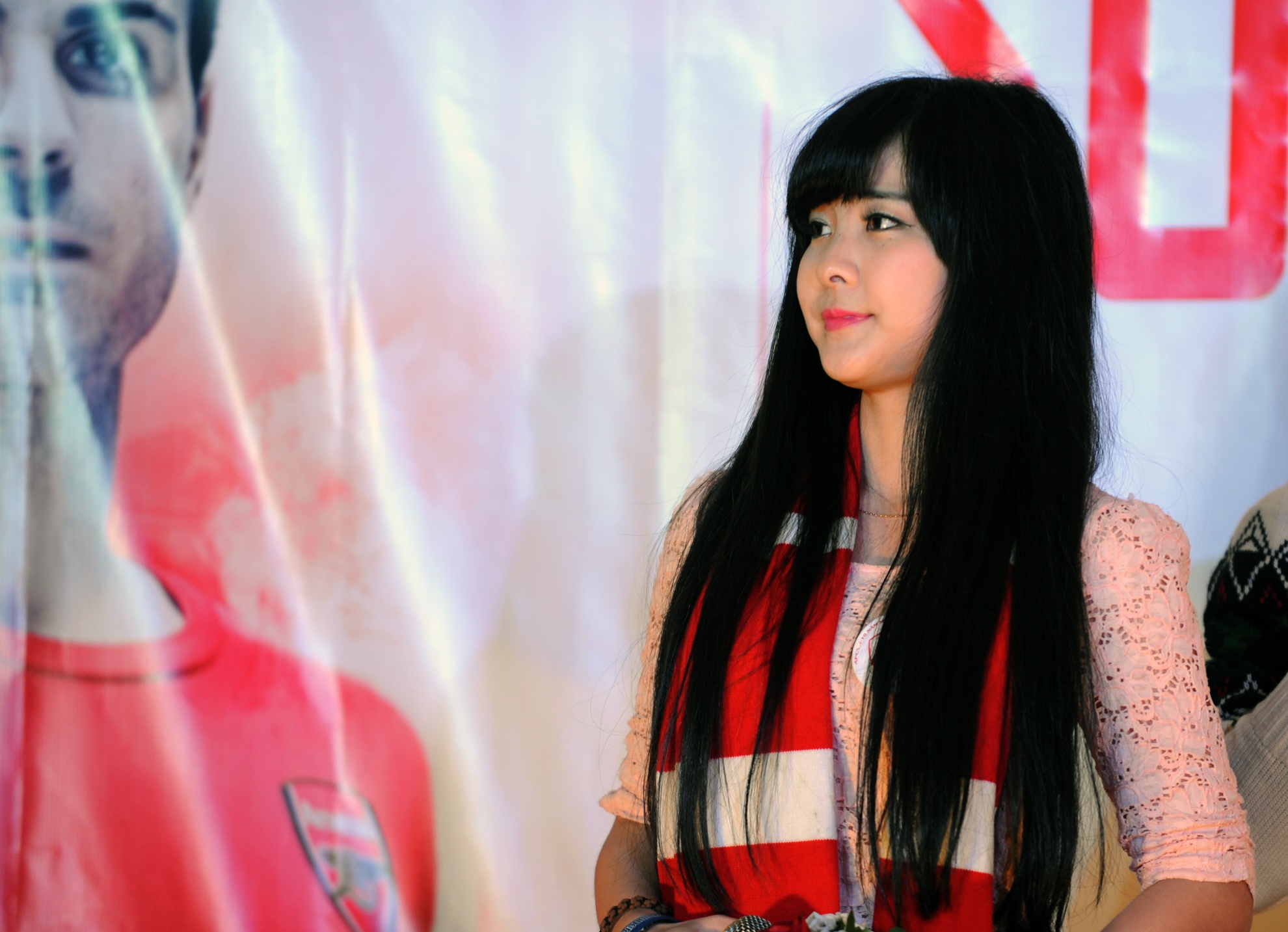 Có mặt trong đêm gala kỷ niệm 10 năm thành lập Hội cổ động viên CLB Arsenal tại Việt Nam, Dương Thị Nhật Lệ thu hút được rất nhiều sự chú ý bởi vẻ ngoài xinh xắn của cô.