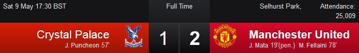 M.U bước vào vòng 36 Premier League gặp Crystal Palace với mục tiêu phải giành chiến thắng để quên đi 3 trận thua trước đó. Tuy nhiên, Quỷ đỏ không có lực lượng mạnh nhất khi Di Maria và Van Persie vắng mặt do gặp vấn đề thể lực.