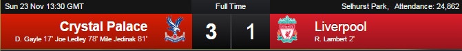 +Crystal Palace: Speroni, Kelly, Delaney, Dann, Ward, Jedinak, Ledley, Bolasie, Puncheon, Chamakh, Gayle.