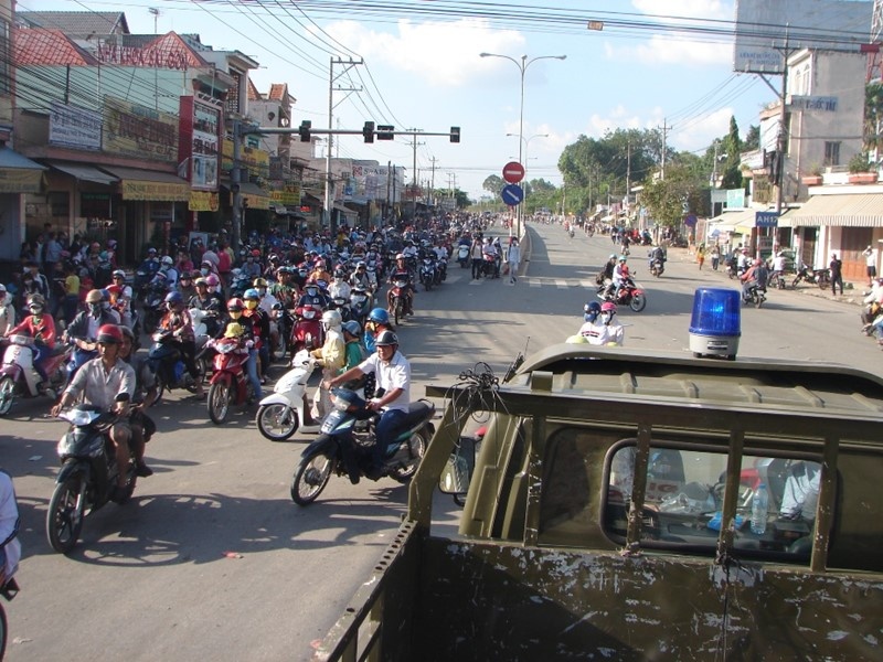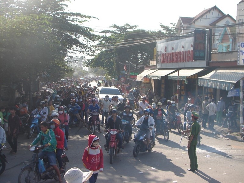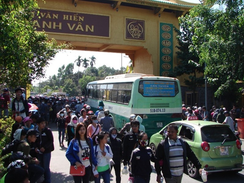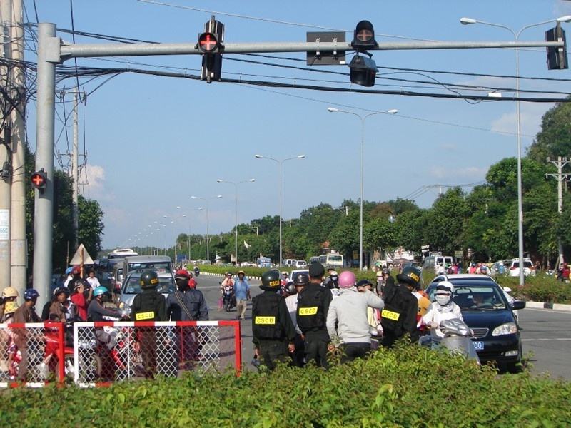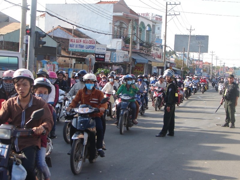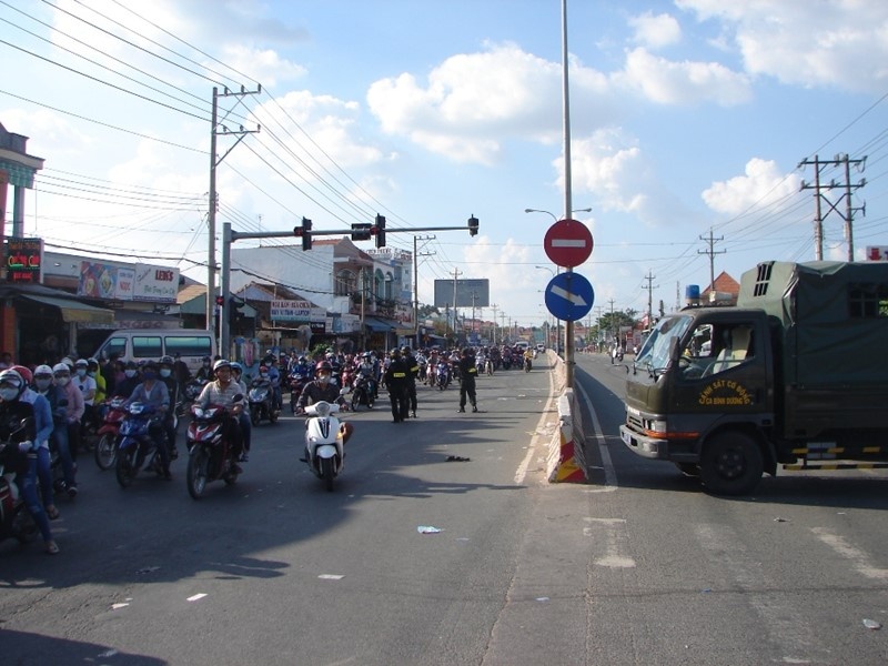 | Phòng Cảnh sát giao thông – Công an tỉnh Bình Dương cũng huy động tổng lực ra quân lập nhiều chốt phân luồng. Tuy nhiên tình hình giao thông rất căng thẳng, với hàng chục ngàn phương tiện cùng hàng trăm ngàn du khách tràn ra đường. |