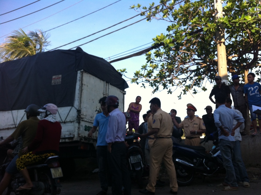 | Lực lượng CSGT đang xử lý hiện trường vụ việc. |