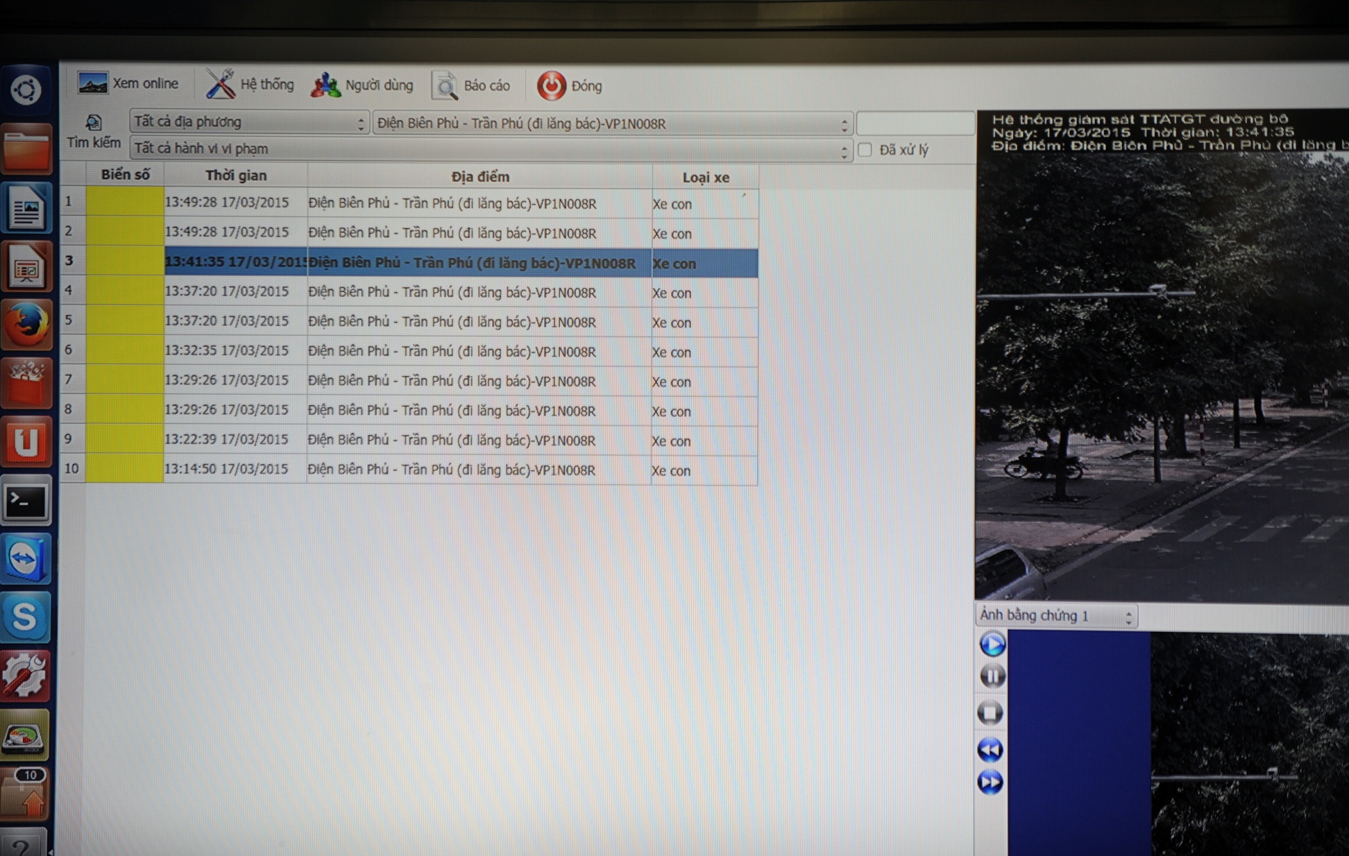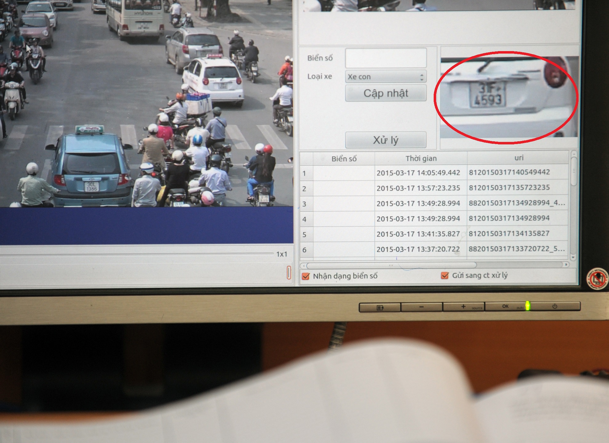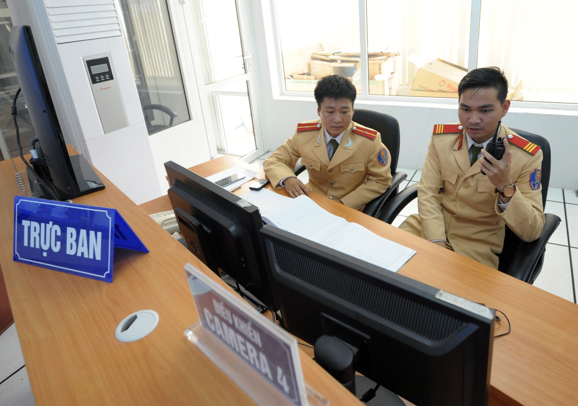 | Khi một phương tiện vi phạm, hệ thống camera sẽ lưu lại hình ảnh, biển kiểm soát, địa điểm và gửi về màn hình máy tính. Cán bộ trực tại trung tâm sẽ thông báo trực tiếp qua bộ đàm cho các tổ tuần tra ngoài đường để tổ chức dừng phương tiện, xử lý vi phạm. Hình ảnh từ đây sẽ lần lượt gửi vào điện thoại cho các chiến sĩ CSGT để làm bằng chứng và kèm theo biên bản xử phạt. |