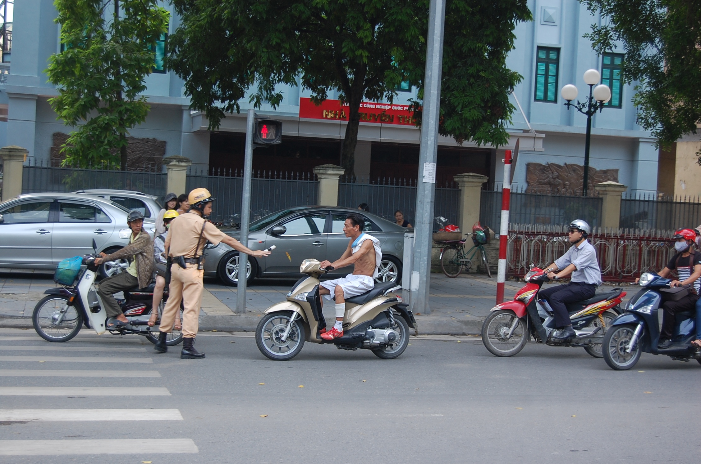 CSGT Hà Nội mạnh tay với thanh niên đầu trọc, cởi trần