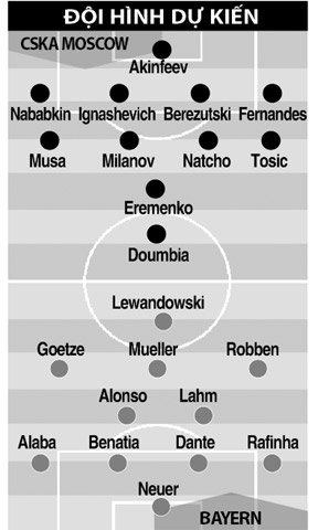 | Bayern (áo trắng) sẽ lại dễ dàng có chiến thắng trước CSKA. |