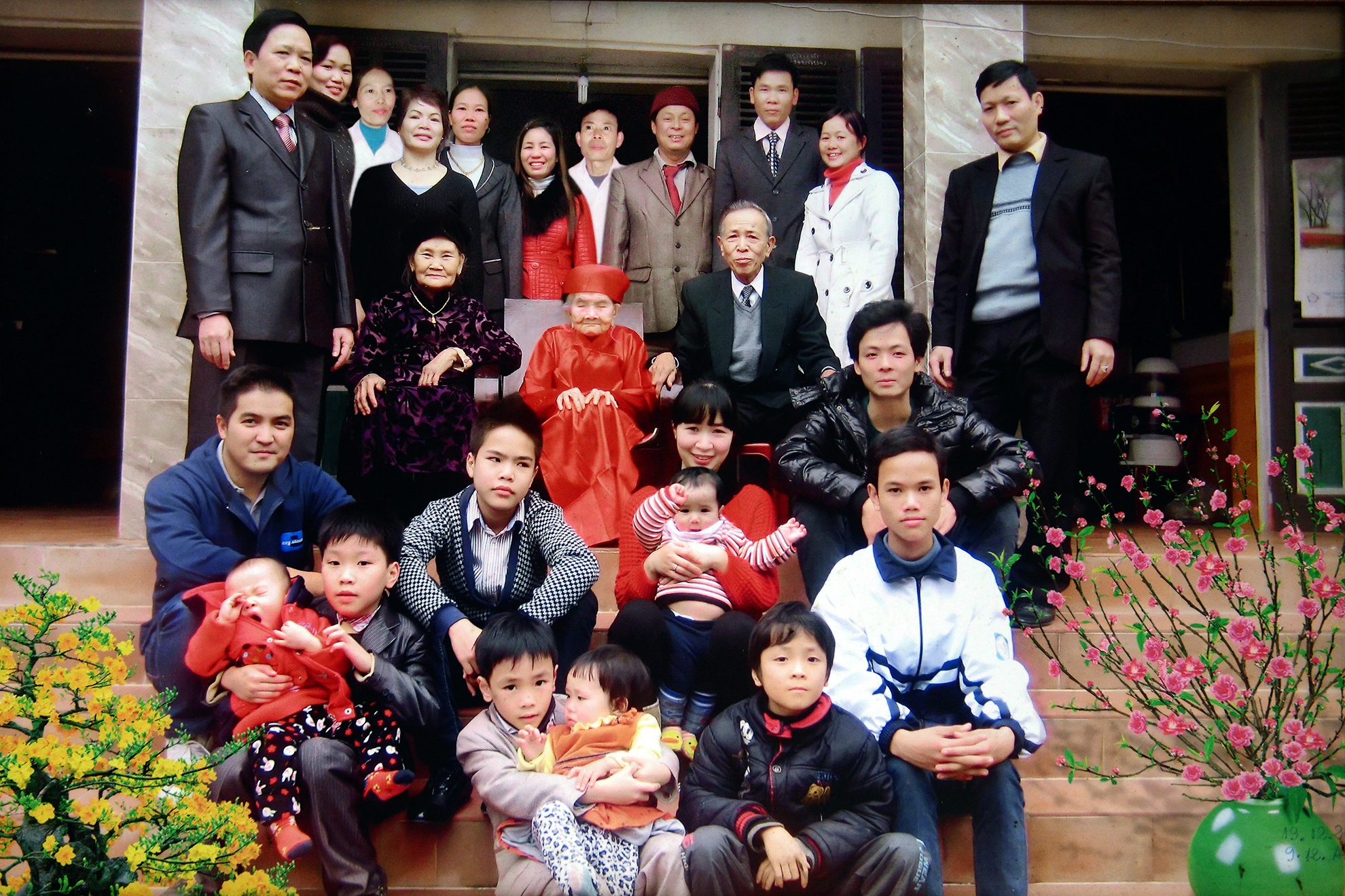 Ảnh chụp thượng thượng thọ 110 tuổi cụ Chạo bên gia đình vào dịp Tết Giáp Ngọ 2014 vừa qua. Nếu tính cả gia đình các con gái và con nuôi, cụ hiện đã có hơn 100 con cháu kể cả nội ngoại.