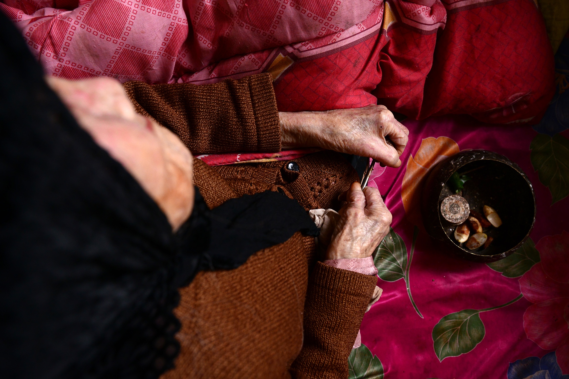| Hơn mười năm nay, mắt đã kém hẳn, tai cũng đã lãng nhưng cụ vẫn muốn tự mình làm mọi việc mà không cần nhờ đến con cháu. Ấm nước, khay trầu cau hay đồ đạc được đặt ở đầu giường, cụ cần làm gì chỉ lần tay là lấy được. |