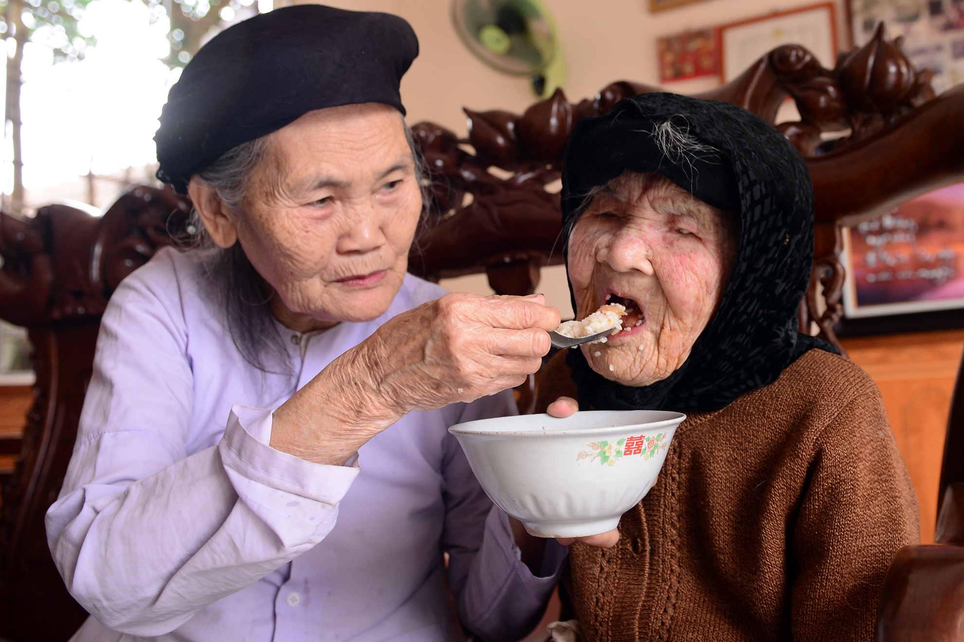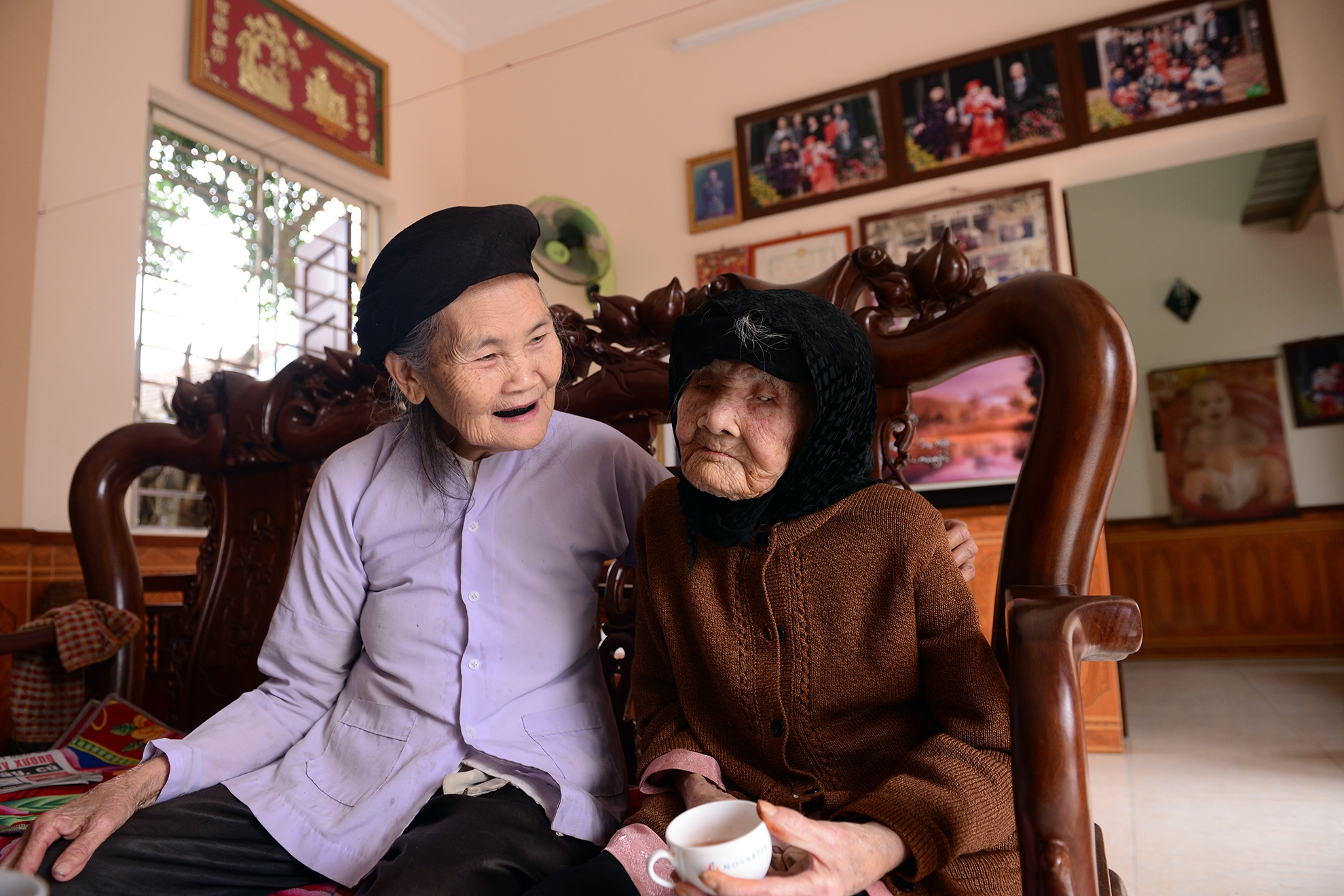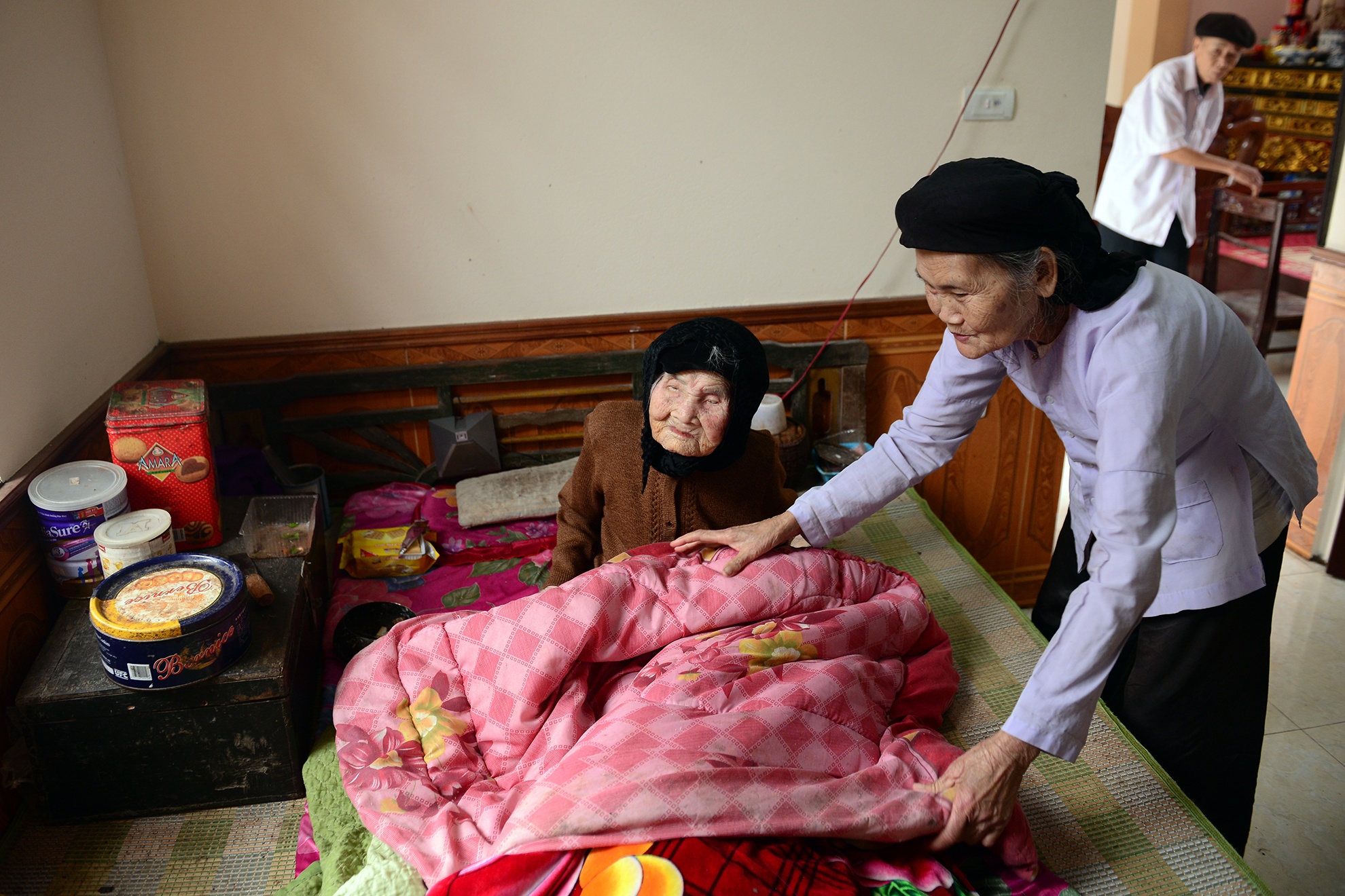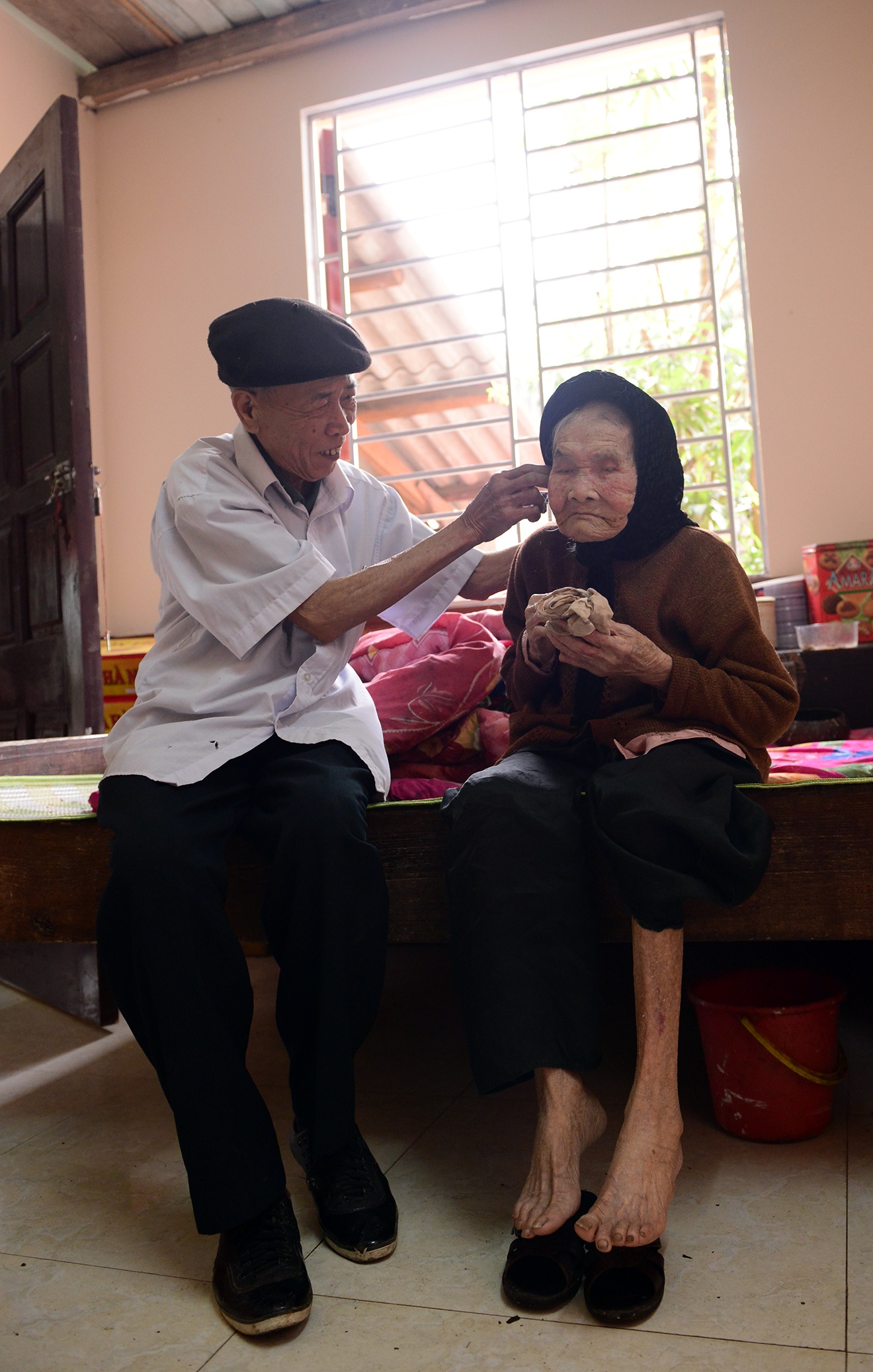 Đôi chân cụ vẫn khỏe mạnh và đi lại được, ngày nào trời ấm là ông Thăng lại dìu mẹ ra sân hè sưởi nắng. Mấy năm về trước còn tự mình vệ sinh, tắm giặt mà không cần nhờ đến con cháu.