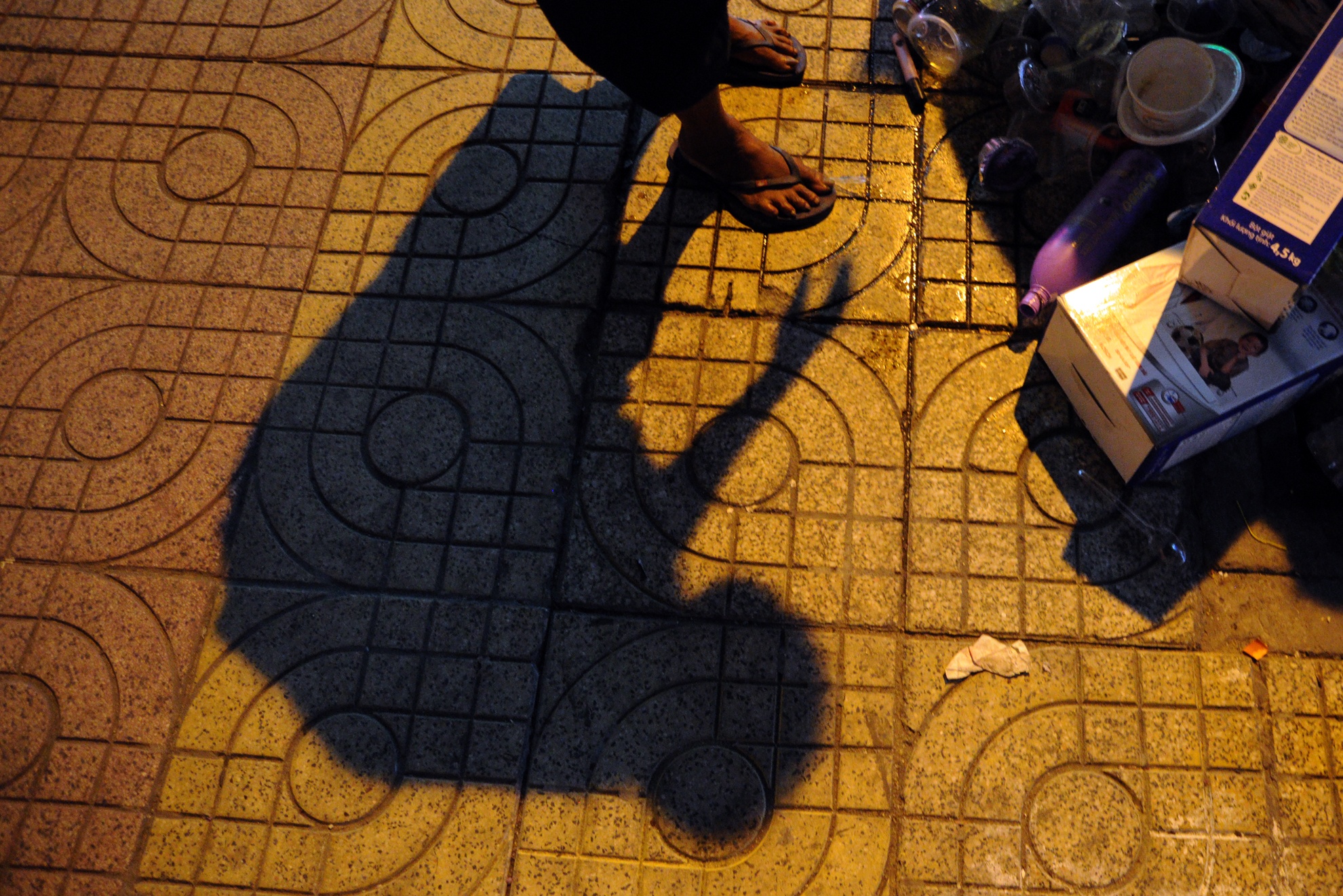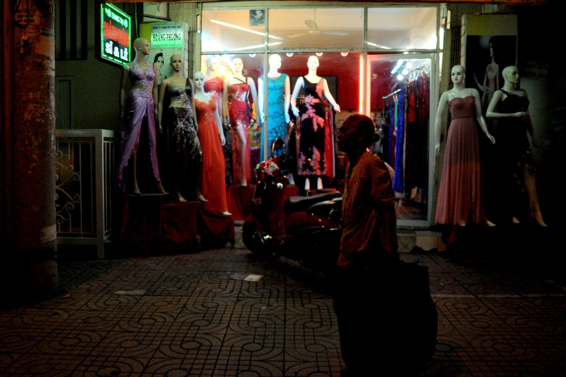 Sẩm tối, khi ánh đèn đường bật cũng là lúc bà chuẩn bị dụng cụ để bắt đầu cuộc mưu sinh.