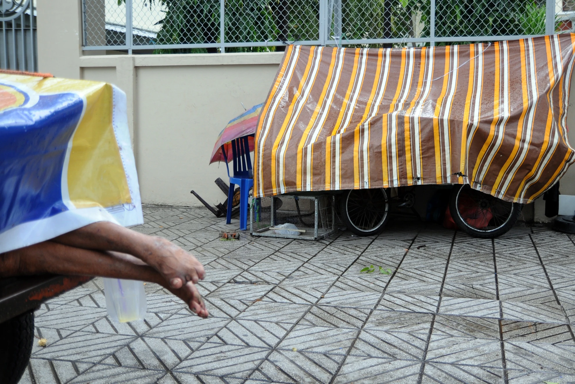 | Từ ngày các cháu vào ở mái ấm, bà sống lủi thủi một mình ở vỉa hè. Ăn uống thì bà có cơm từ thiện, tắm giặt thì vào nhà vệ sinh công cộng ở bệnh viện gần đó. |