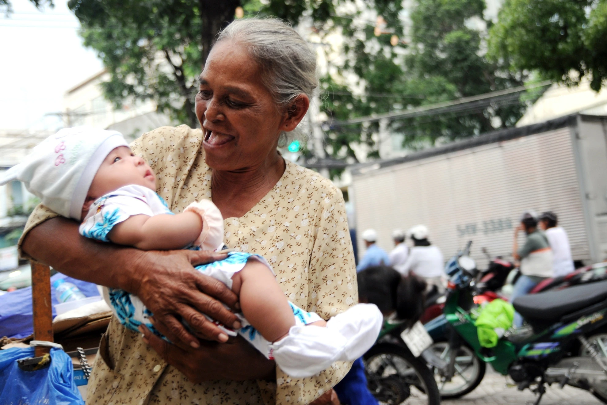 Cụ bà 70 mưu sinh cùng 2 người bạn nhỏ trên vỉa hè Sài Gòn