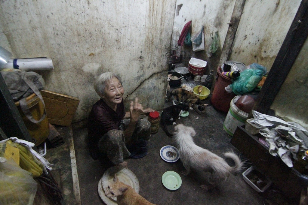 Vật quý nhất là chiếc ti vi cũ và cái quạt. Nhưng tài sản lớn nhất và niềm vui của cụ là khoảng 50 con mèo bị bỏ rơi được cụ nhặt về chăm sóc.