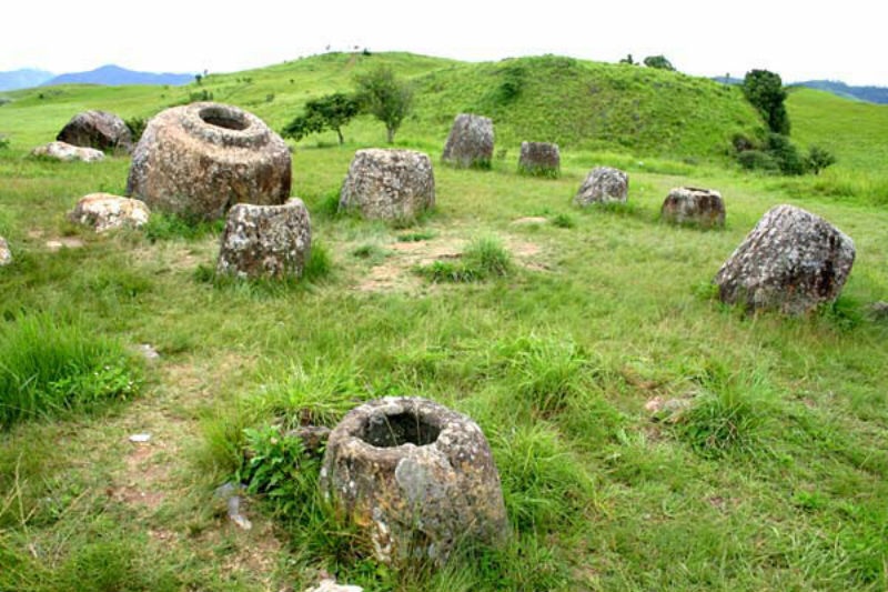 6. Cánh đồng chum, Lào: Cánh đồng chum nghe có vẻ chỉ là một nơi chứa những chiếc chum nhàm chán, nhưng ngược lại đây lại là một trong những điểm du lịch bí ẩn nhất ở Đông Nam Á. Chưa có ai có thể giải thích được nguồn gốc và lý do tại sao những chiếc chum kỳ lại này lại được đặt ở đây. Tuy nhiên, giả thuyết được cho hợp lý nhất cho rằng đây là một nghi lễ chôn cất người chết của người cổ xưa trong thời kỳ đồ sắt. Du khách có thể tới thăm cánh đồng chum tại cao nguyên Xiêng Khoảng ở cuối phía bắc dãy núi Trường Sơn.