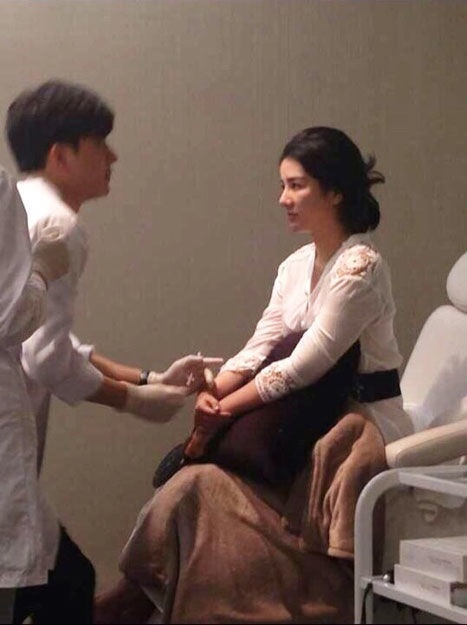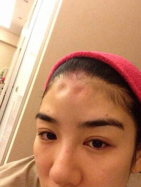 | Hình ảnh được cho là Huỳnh Dịch vào viện để làm đẹp theo phong trào trán phồng từng được giới trẻ Nhật ưa chuộng. Tuy nhiên, Huỳnh Dịch đã dùng những tấm ảnh này để làm bằng chứng cho việc bị chồng bạo hành. |