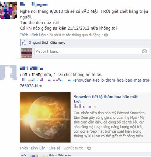 | Rất nhiều bạn trẻ bị tác động trước thông tin về bão mặt trời. |
