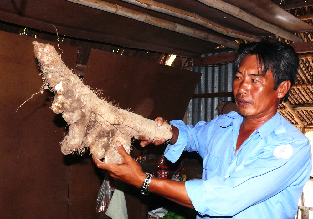 “Vì loại khoai này thuộc dạng củ dây nên phải bẻ ra từng nhánh mới lấy lên được. Sau khi tập hợp các nhánh lại đem cân mới biết nặng hơn 64kg”, ông Hưng nói. |