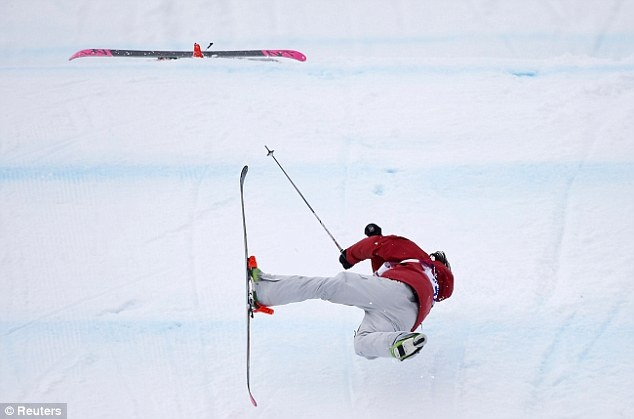 | Trong lúc thực hiện bài thi ở nội dung freestyle, VĐV Yuki Tsubota đã mắc lỗi khi tiếp đất. |