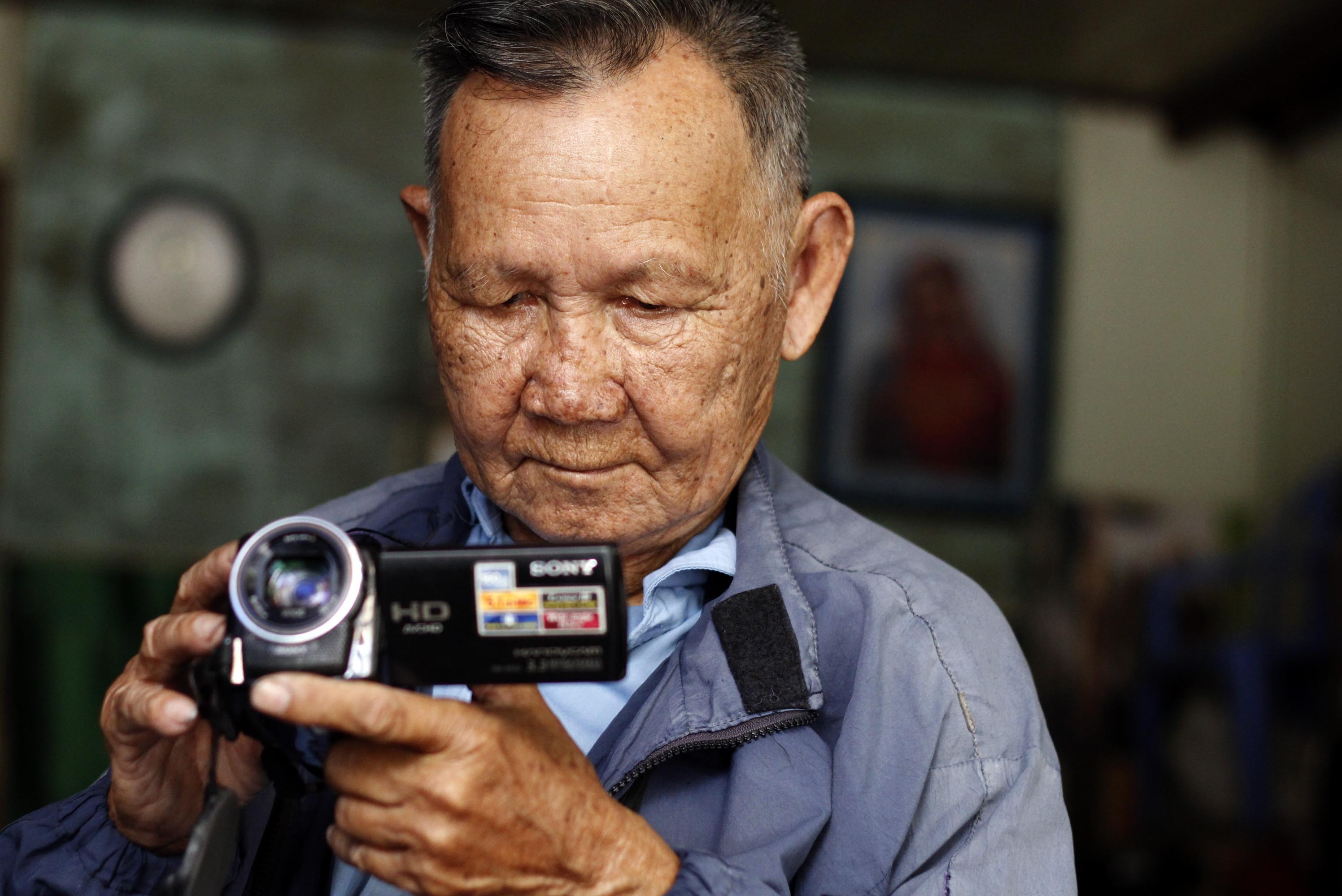 | Chiếc máy quay phim theo cụ bao năm qua, ghi lại nhiều cảnh sắc thiên nhiên và đời sống. Cụ thường sử dụng màn hình LCD để quay hay chụp ảnh chứ không dùng ống ngắm vì không muốn người khác bị làm phiền hay khó chịu. |
