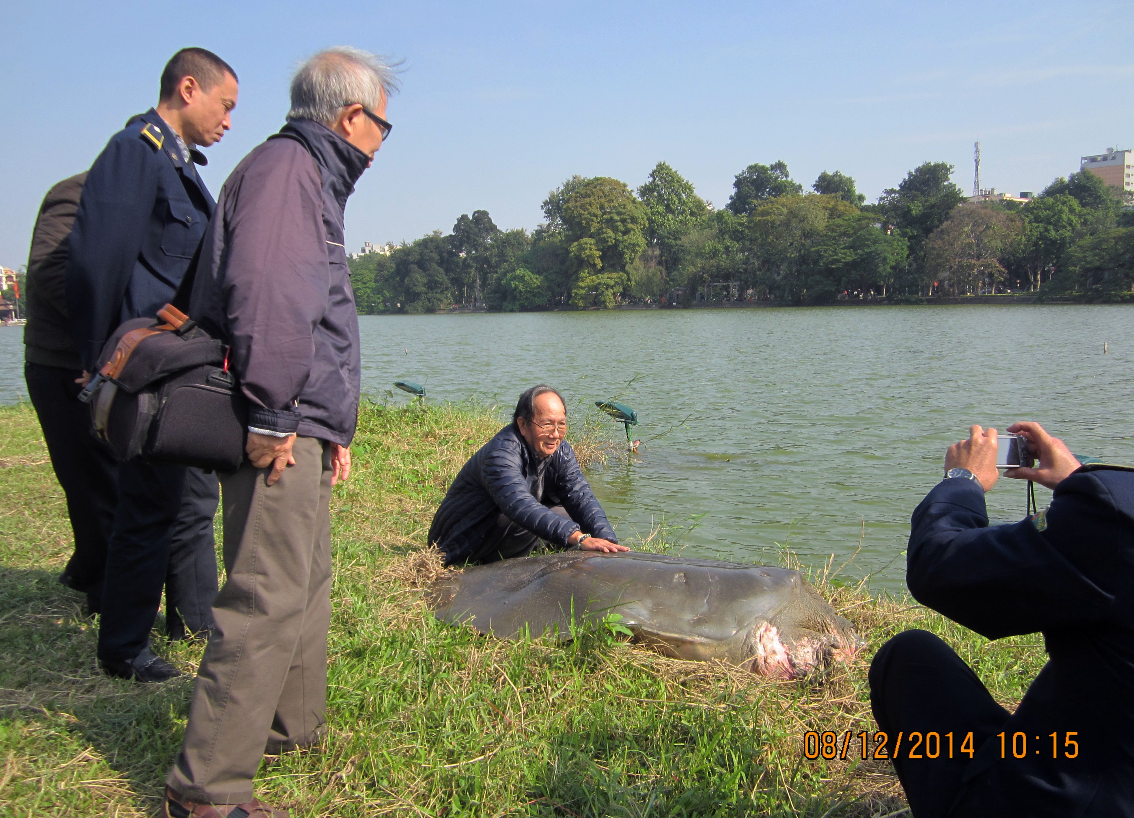 Lần này cụ rùa nổi hơn 1 tiếng đồng hồ. Nhiều thành viên trong nhóm tranh thủ lưu lại hình ảnh kỷ niệm hiếm có với cụ. Theo Phó giáo sư Đức, chiếc mai vốn thương tích mấy năm trước giờ gần như đã khỏi hoàn toàn. Vẻ bóng nhẫy chứng tỏ "cụ" khỏe hơn nhiều so với trước đây.