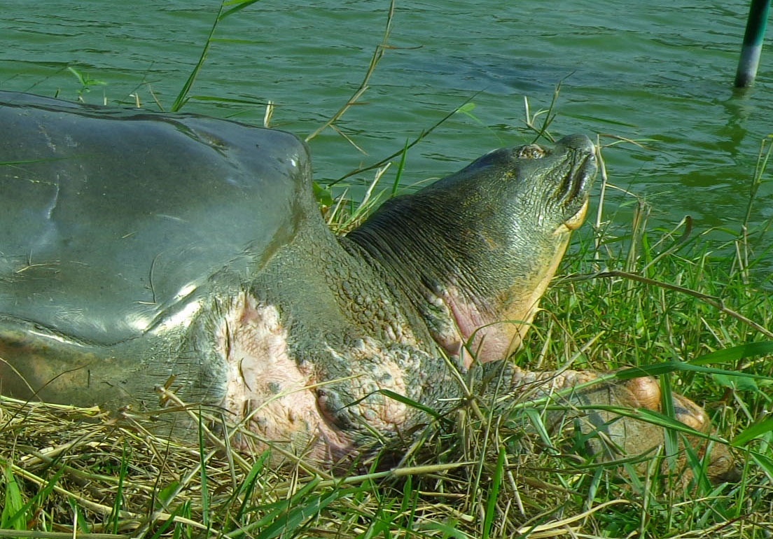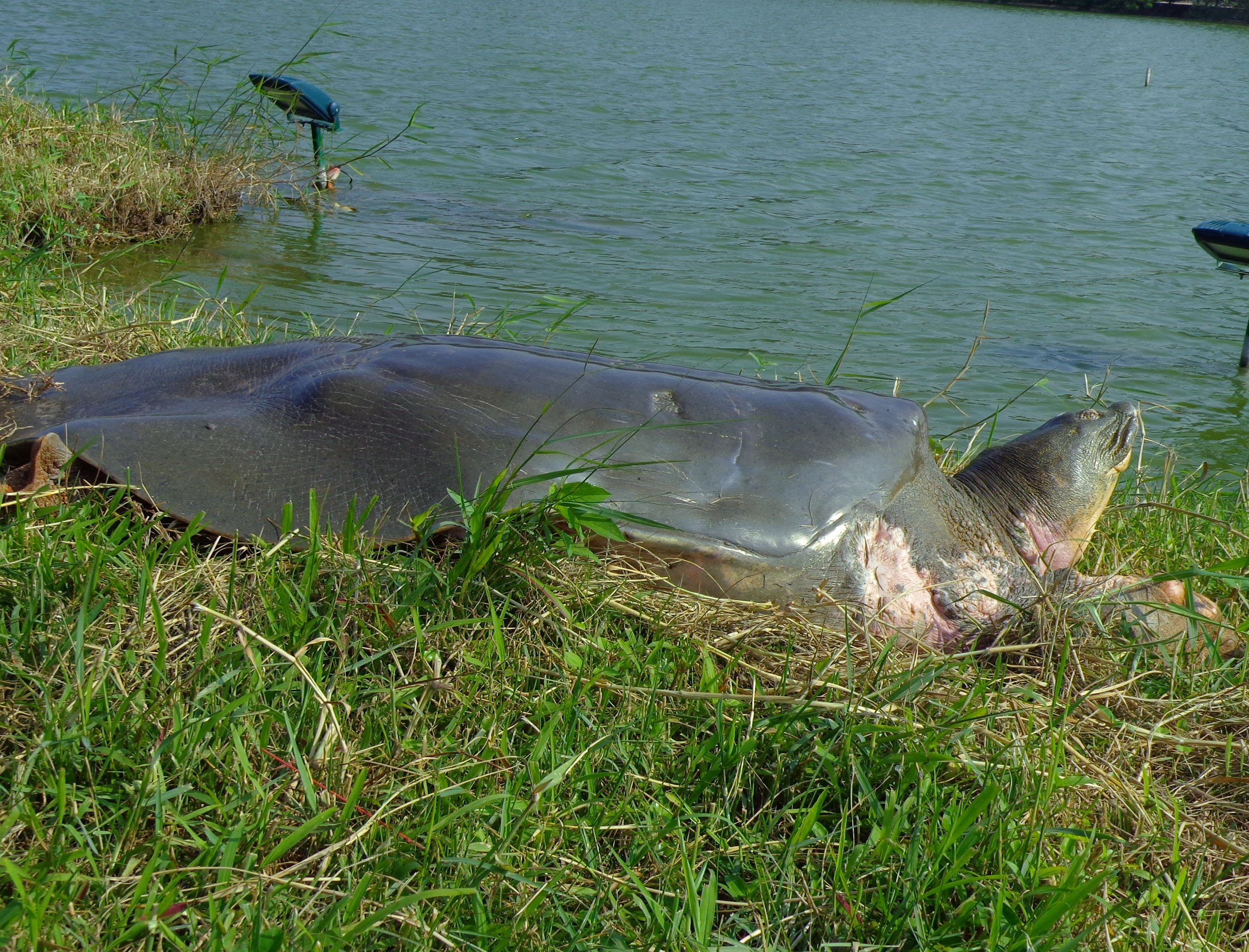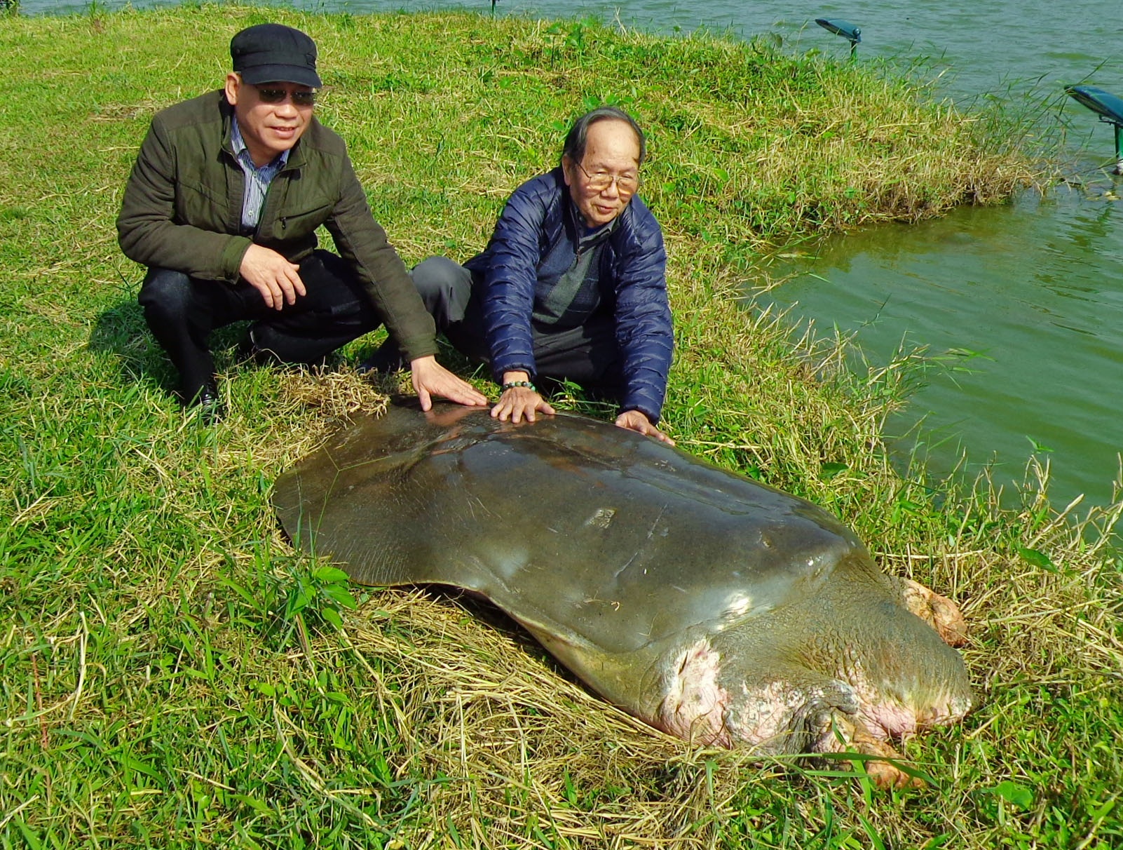 Hình ảnh cụ rùa to lớn hơn nhiều so với một người bình thường.