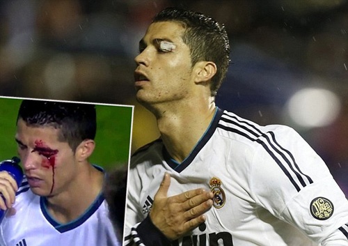 Tháng 11/2012, Ronaldo khiến người hâm mộ hú vía khi “ăn” một cú đánh cùi chỏ mạnh như trời giáng thẳng vào mắt trong trận gặp Levante. Kết quả là chàng tiền vệ Real bị rách mí mắt trái, máu chảy đầm đìa trên khuôn mặt. Bị chấn thương nghiêm trọng là thế, nhưng ngôi sao người Bồ Đào Nha vẫn quyết định trở lại sân sau vài phút được bác sĩ chăm sóc. Với chiếc băng gạc trên mắt, dù thị lực và tầm nhìn có giảm, dù thể lực có phần suy yếu, CR7 cũng quyết phải ghi một bàn thắng vào lưới đối phương trước khi rời sân và đến thẳng… bệnh viện. Chỉ có tinh thần quyết chiến, lòng quả cảm mới có thể giúp anh vượt qua đau đớn để làm được điều phi thường như thế.