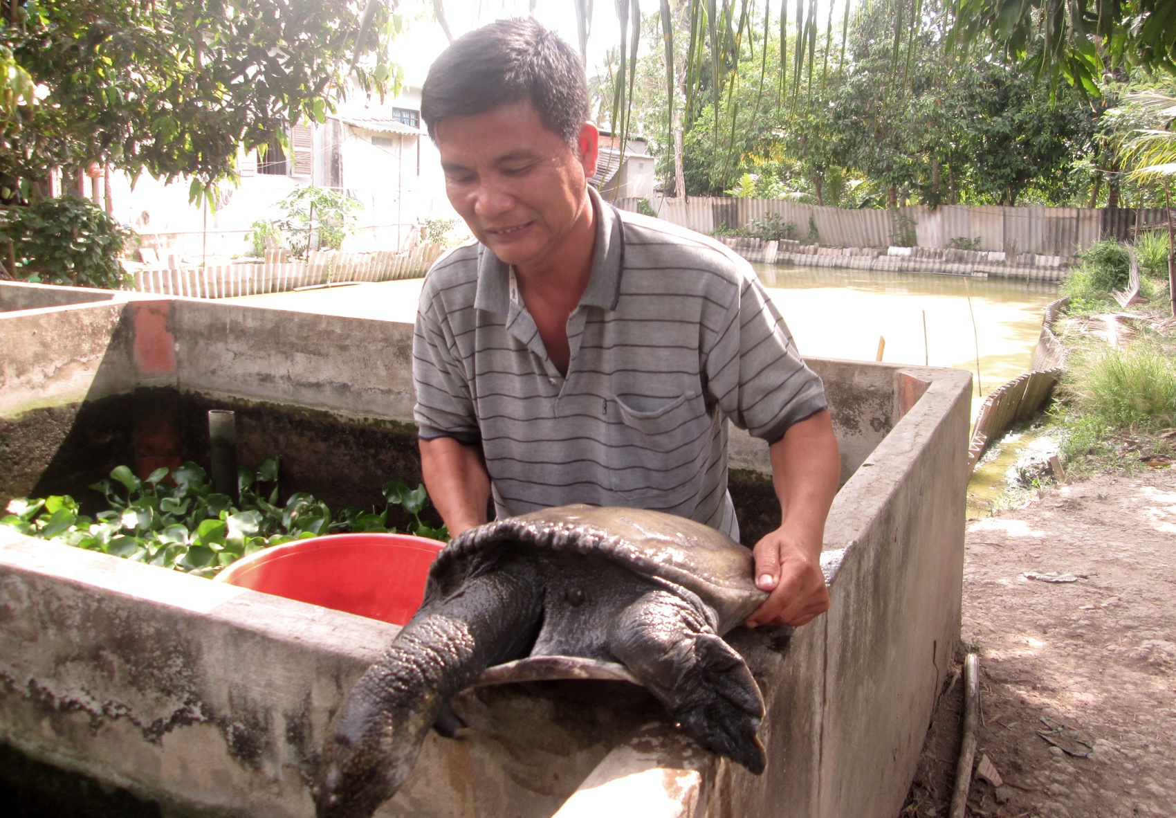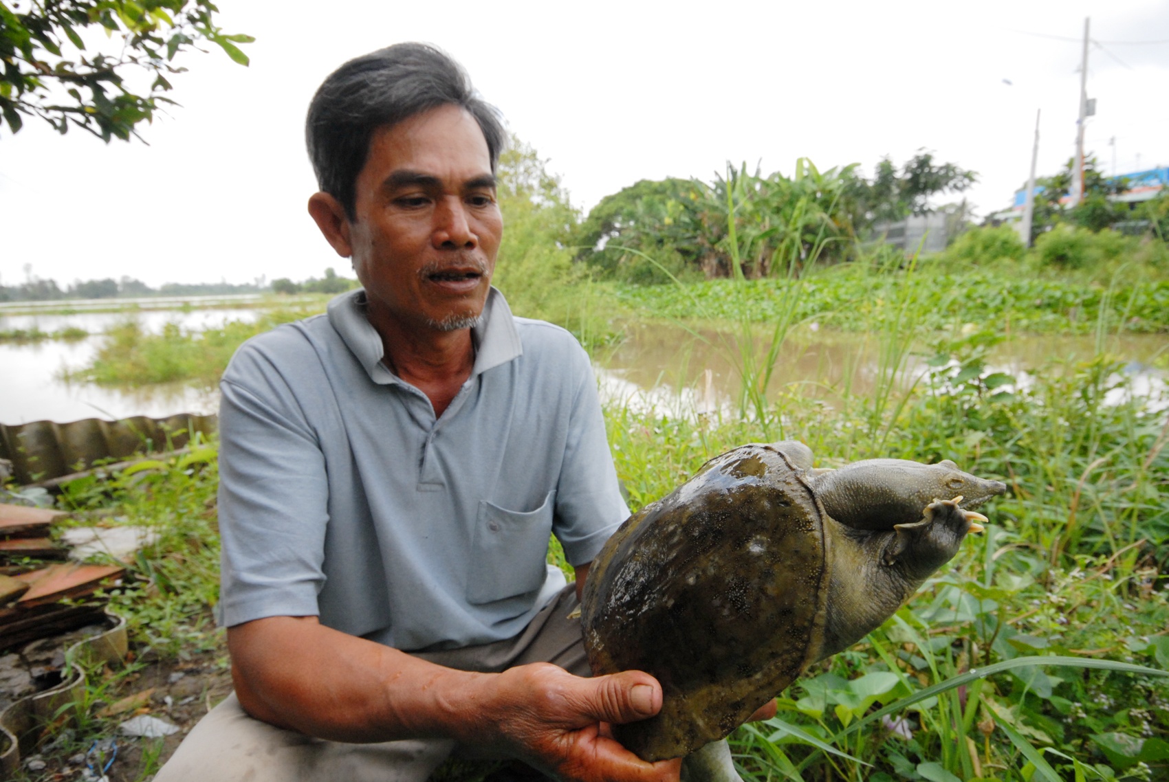 Ông Đinh Công Thủ, ở ấp Láng Hầm B, xã Thạnh Xuân, huyện Châu Thành A (Hậu Giang) nuôi 10.000 con ba ba và 250 cua đinh, bình quân mỗi năm thu lãi gần 1 tỷ đồng.
