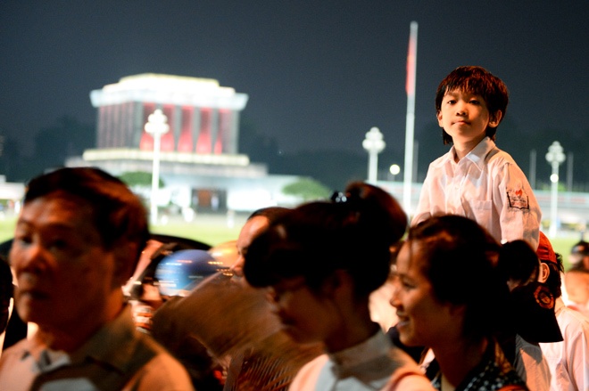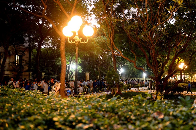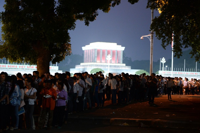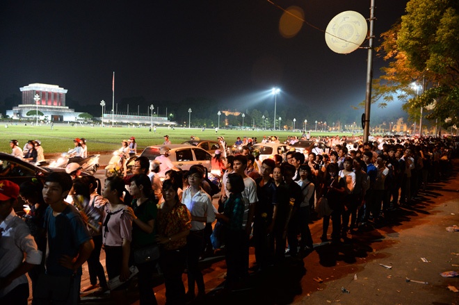 | 19h tối, khu vực lăng Chủ tịch Hồ Chí Minh vẫn đông nghẹt. |