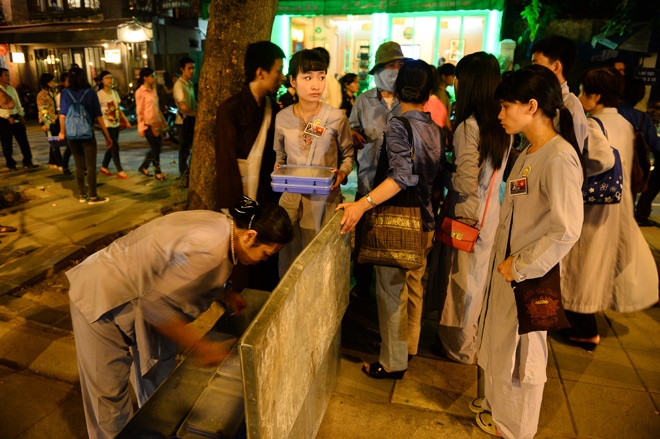 | 21h50, cánh cổng đã chính thức khép lại. Bên trong nhà, vẫn còn khá nhiều người đang chờ thắp hương. Họ là những người cuối cùng được toại nguyện. |