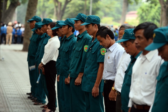 | 17h chiều nay, 10/10, nhiều tập thể đã phải nhường chỗ xếp hàng cho dân và đứng bên ngoài làm động tác mặc niệm tưởng nhớ Đại tướng. |