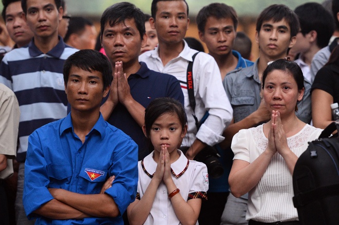 | Nhiều người đứng ở khu vực dải phân cách hướng về phía nhà Đại tướng vái vọng. Họ dự kiến sẽ không thể vào tới nhà Đại tướng trước 18h, khi hàng người lúc đó vẫn còn kéo dài tới 4-5 km. |