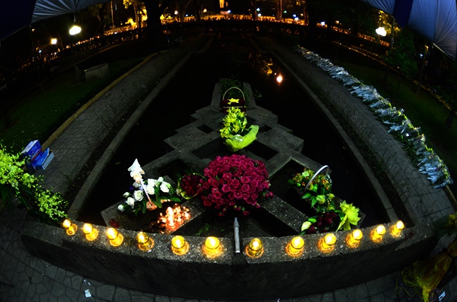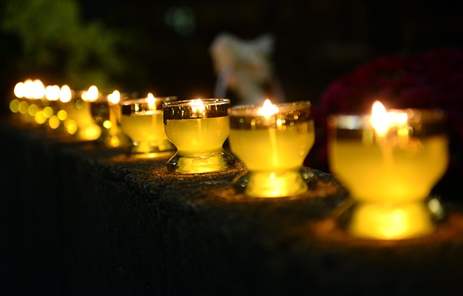 | 103 ngọn nến được những người không vào kịp thắp lên ngay trước cửa nhà Đại tướng Võ Nguyên Giáp, 30 Hoàng Diệu, Hà Nội lúc 22h ngày 10/10. |