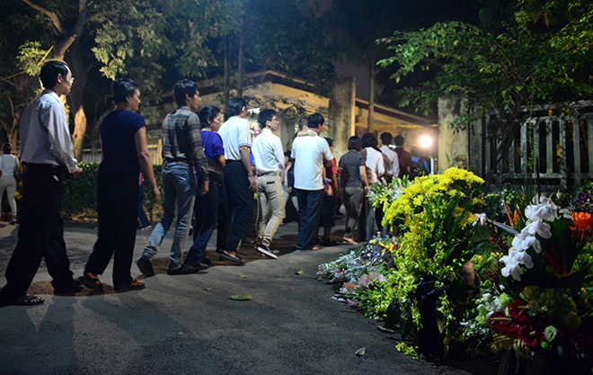 | 20h, đoàn người chỉ còn kéo đến phố Điện Biên Phủ. Nhưng rất nhiều đồng bào đã di chuyển đến trước cửa nhà Đại tướng để vái vọng từ phía ngoài. |