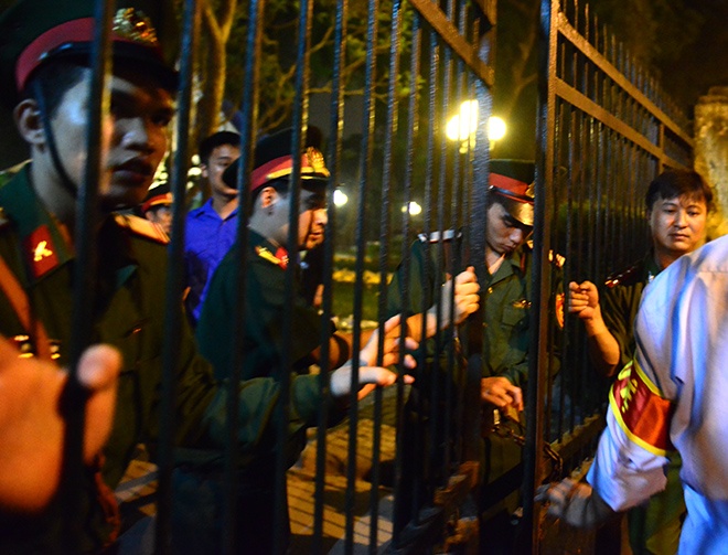 | Những người cuối cùng bước ra khỏi khuôn viên. Hành trình 4 ngày đón tiếp người dân thể hiện lòng thành kính với Đại tướng khép lại, chuẩn bị cho lễ Quốc tang. |