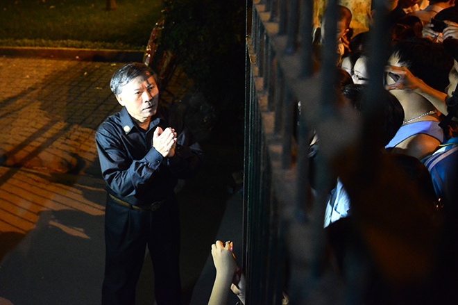 | Cánh cổng đóng lại vào khoảng 21h30, nhưng rất nhiều người vẫn tụ tập ngoài cửa nhà riêng Đại tướng. |