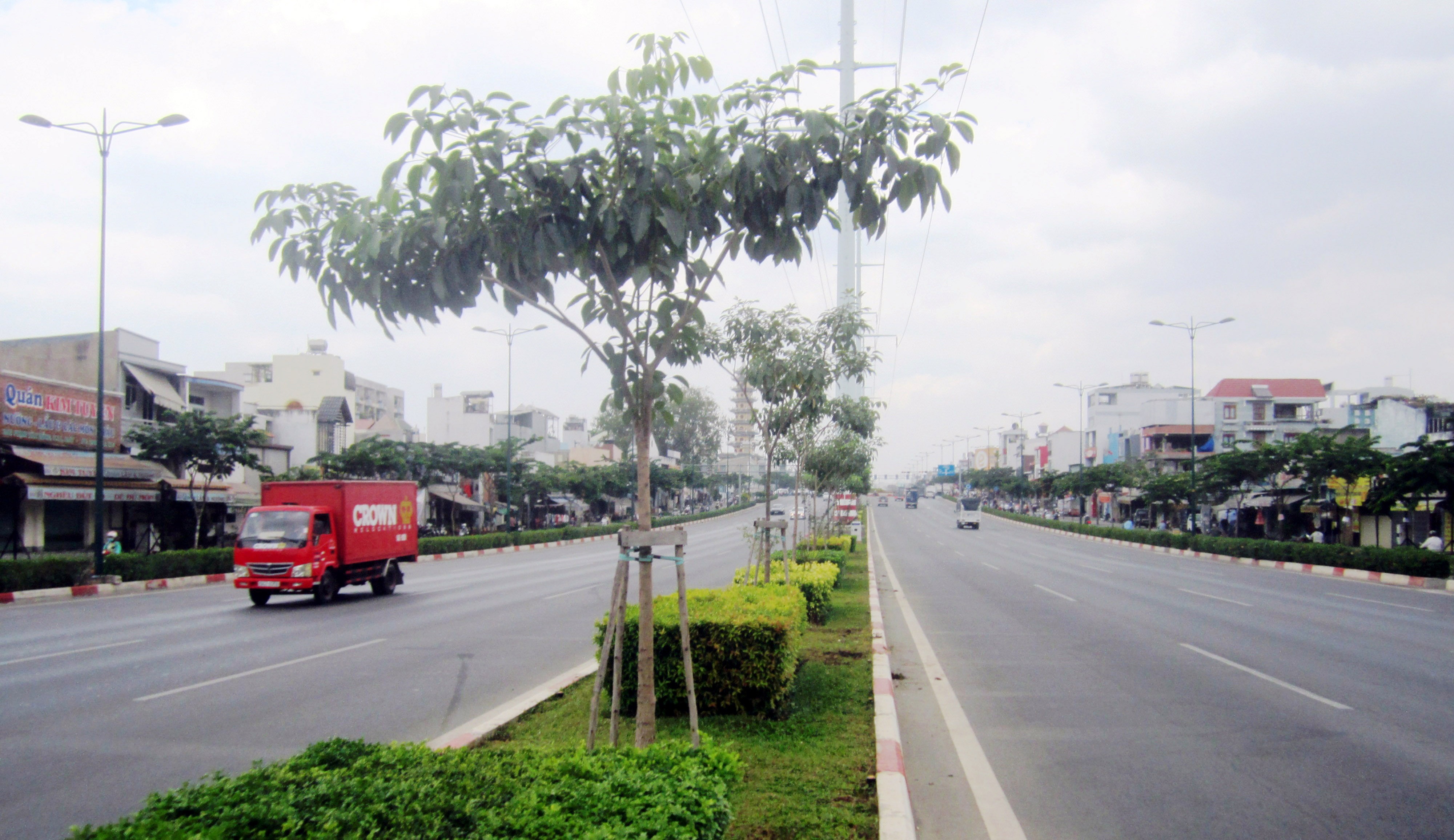 | Một đoạn đại lộ Phạm Văn Đồng vắng bóng cây cau trắng. Ảnh: T.N. |