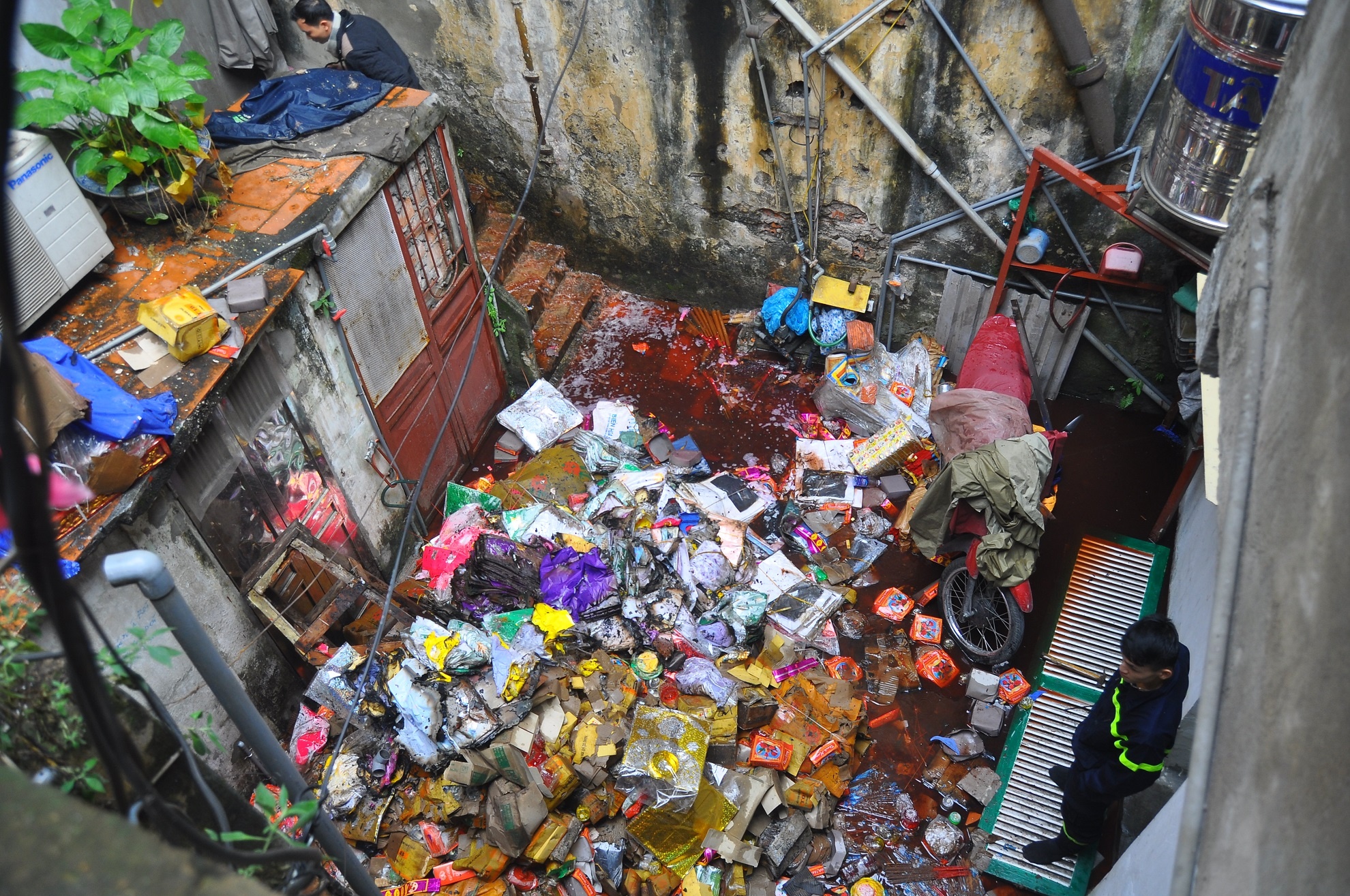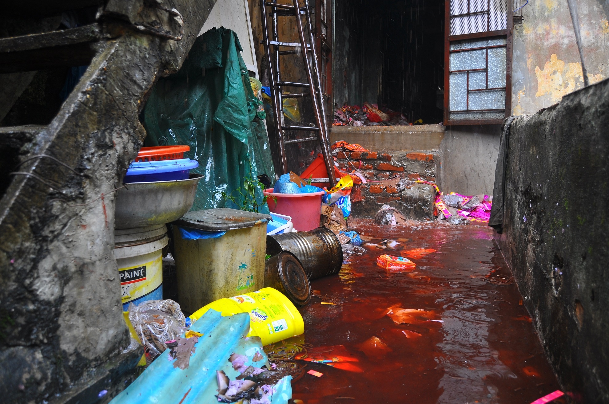 Toàn bộ nền nhà tầng 1, khu vệ sinh tập thể đã bị ngập.