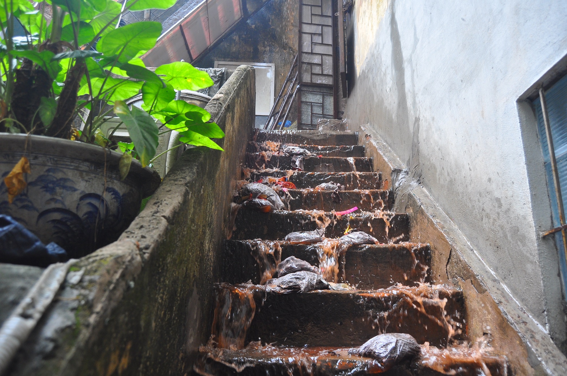| Đồ vật gia dụng nổi lềnh bềnh trên hành lang. |