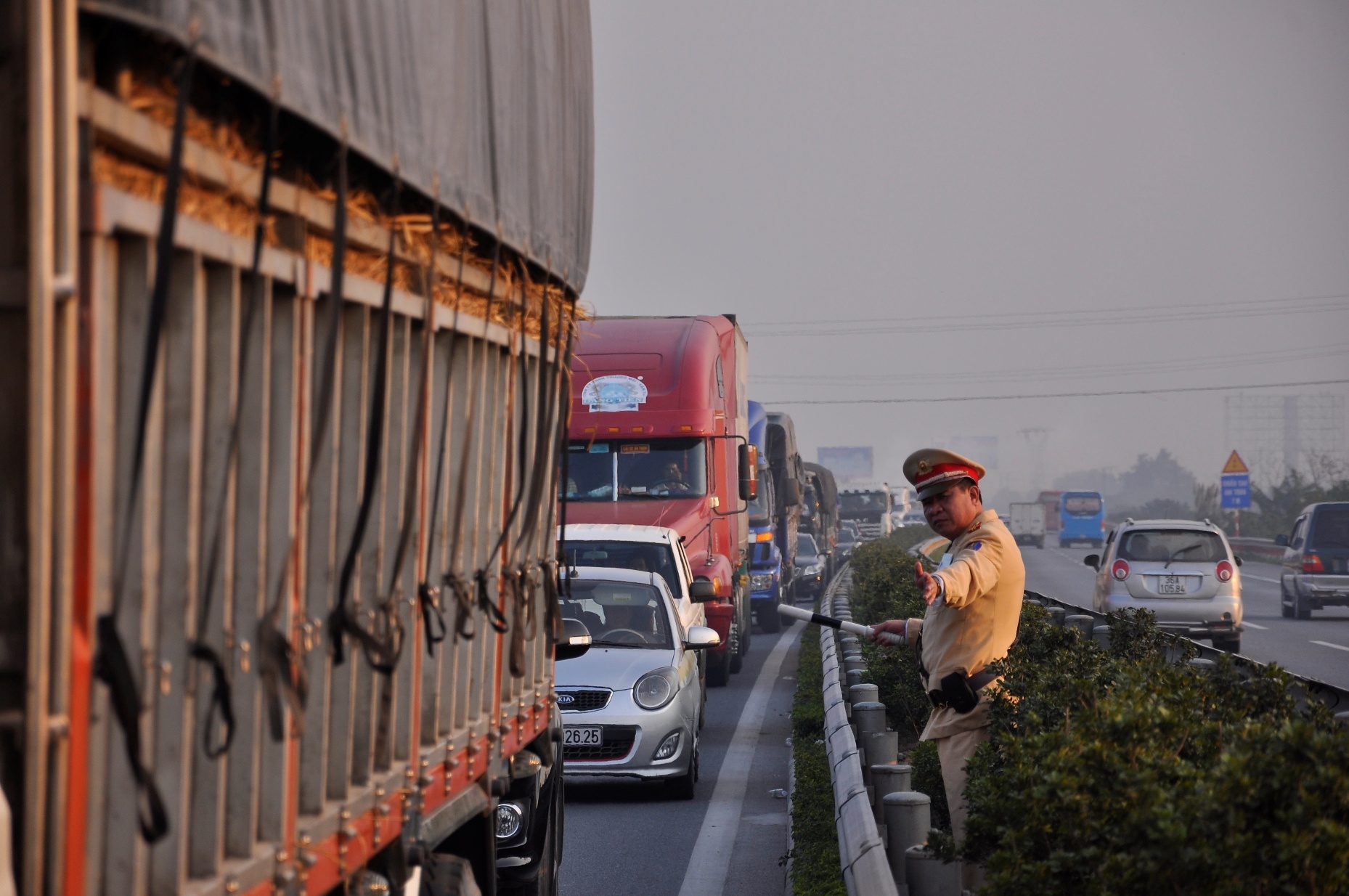 | Chiều 13/2 (mùng 6 Tết Nguyên đán) người dân rời quê trở lại Hà Nội làm việc khiến tuyến cao tốc Pháp Vân - Cầu Giẽ ùn tắc nhiều giờ. |