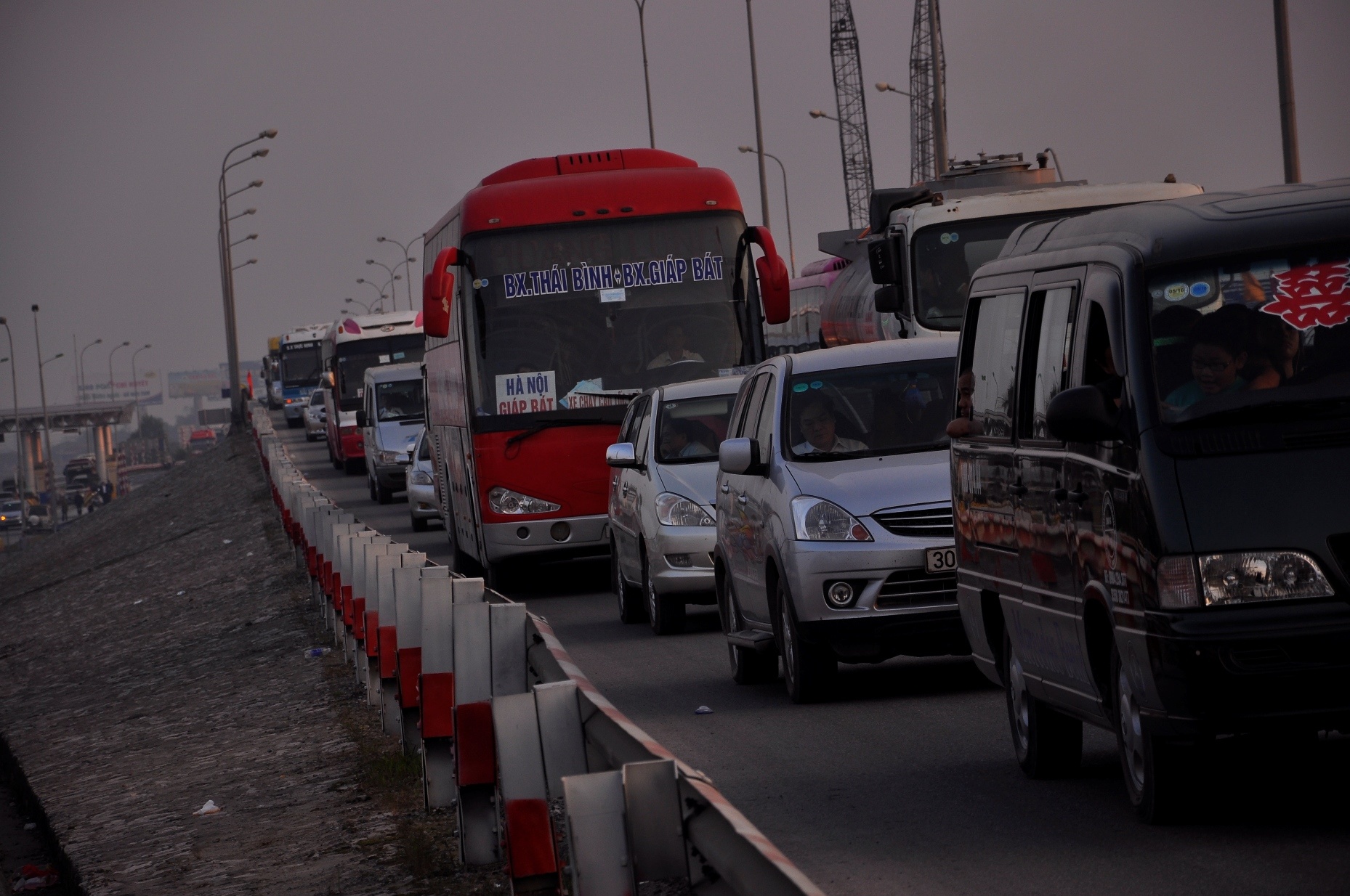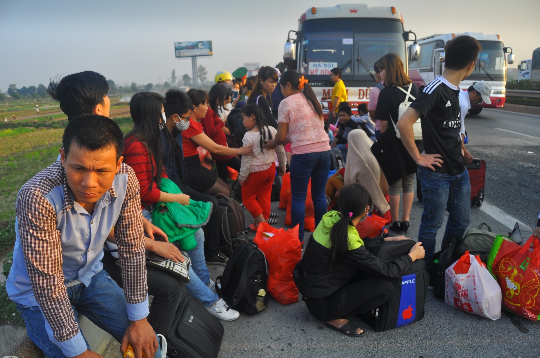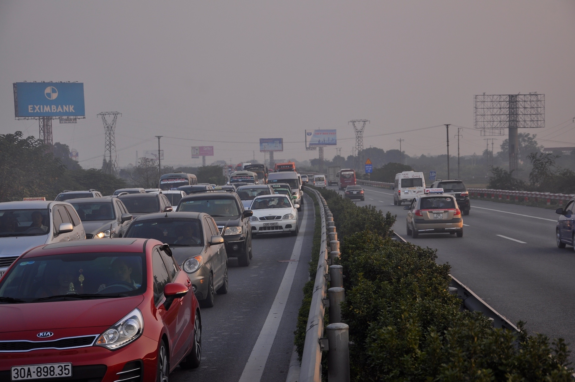 Chiều mùng 6 Tết, 3 xe khách gặp sự cố trên cao tốc Pháp Vân, khiến tuyến đường ùn tắc hơn 10 km. Tại quốc lộ 1A cũ, hàng nghìn người đi xe máy ùn ùn tiến vào thành phố trong đêm.
