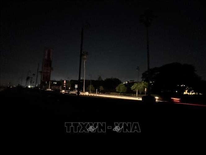 Đường phố thủ đô La Habana, Cuba chìm trong bóng tối do mất điện. Ảnh: Việt Hùng/PV TTXVN tại Cuba |