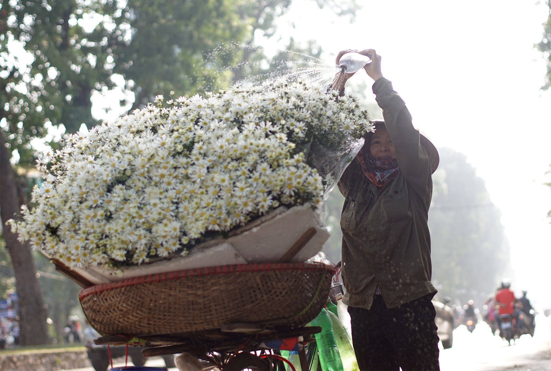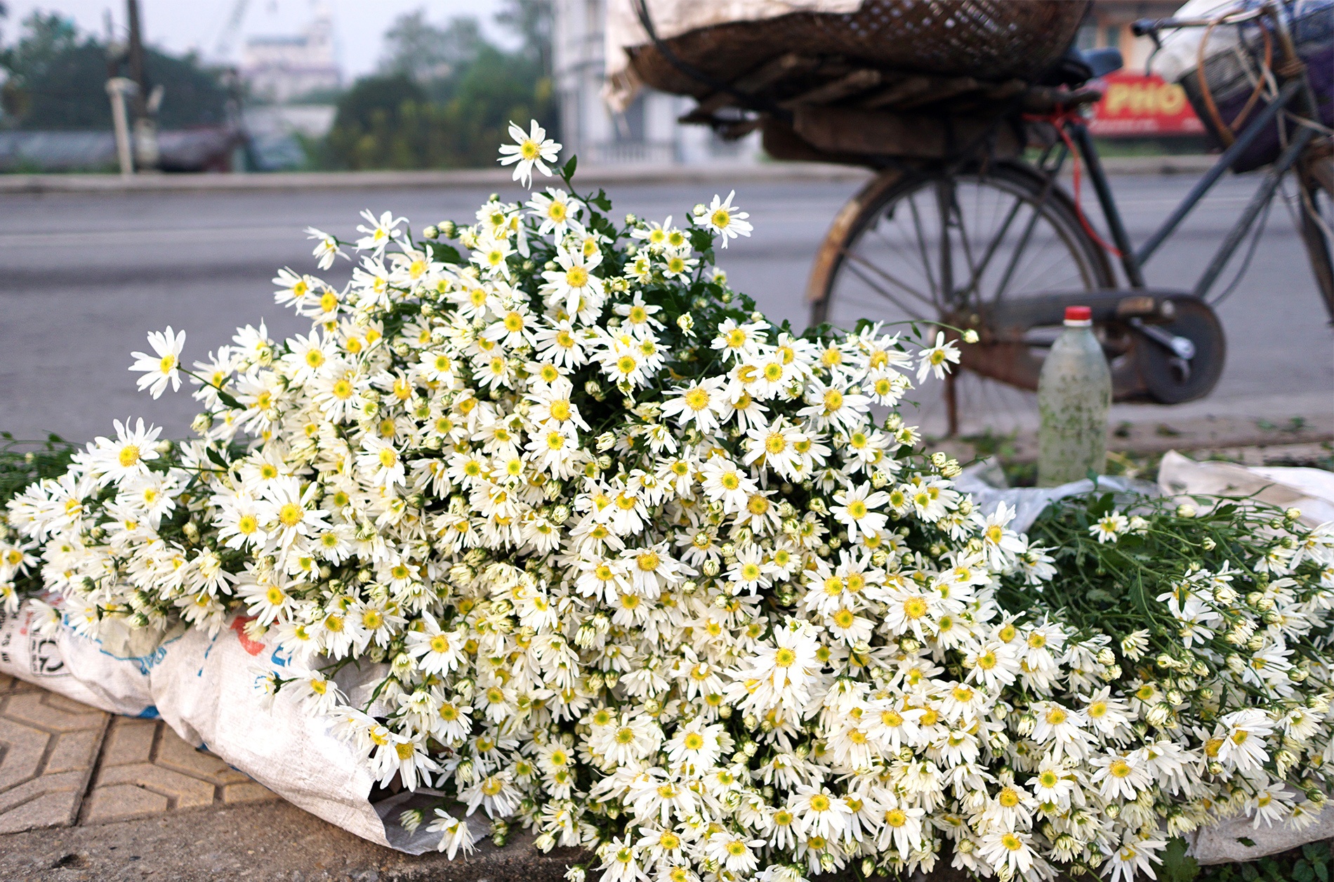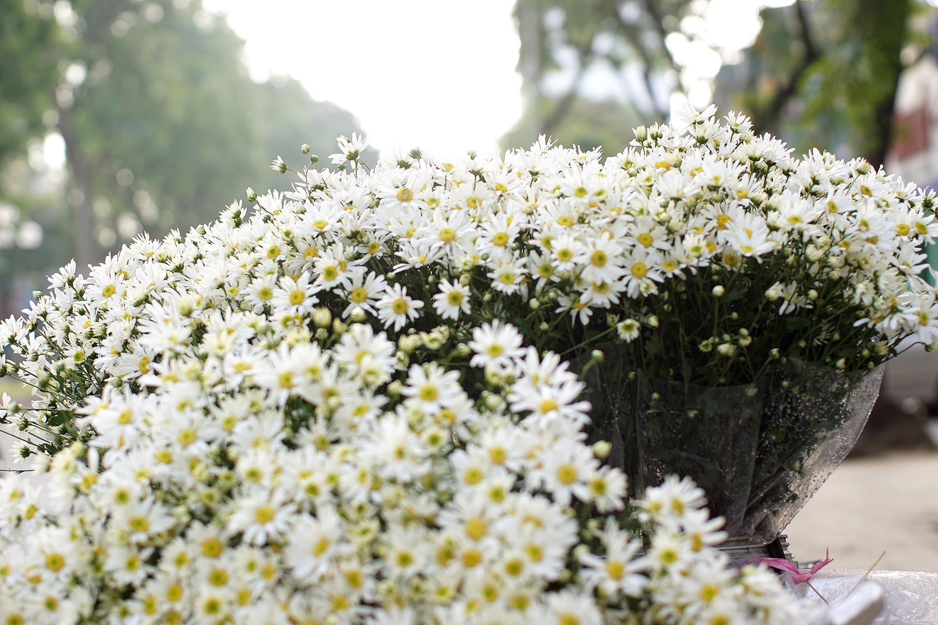 | Nhiều ngày qua, người Hà Nội ra đường có chút xao xuyến nhẹ khi gặp những bó cúc họa mi trên những chiếc xe đẩy, gánh hàng rong rong ruổi phố phường. |