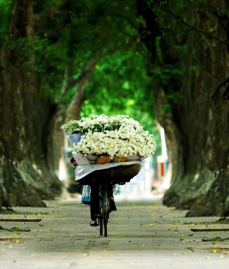 Nếu như những đóa sen nở báo hiệu một mùa hè đến, mùi hoa sữa nồng nàn khắp các góc phố trở thành hương vị đặc trưng cho mùa thu, thì cúc họa mi tinh khôi trên những gánh hàng rong như một nụ cười đầu tiên của mùa đông dịu dàng, e ấp.