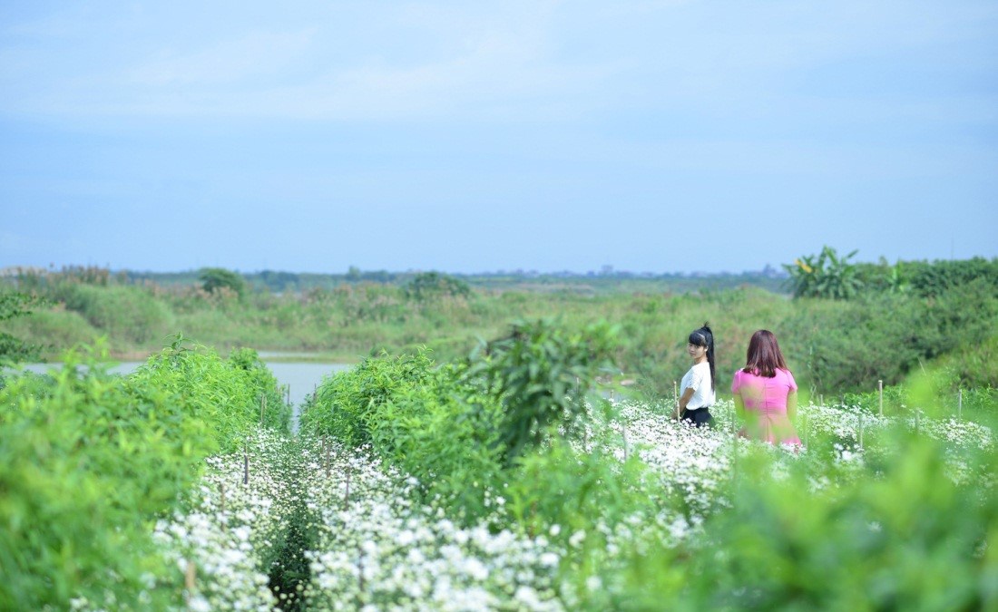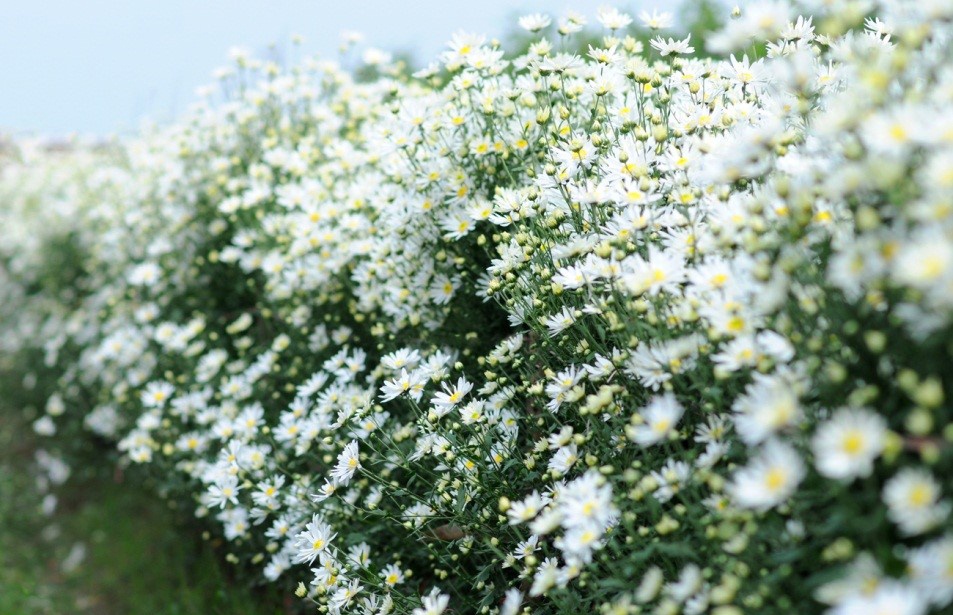 | Cánh đồng cúc họa mi đang ngập trong sắc trắng khiến nhiều người thích thú. |